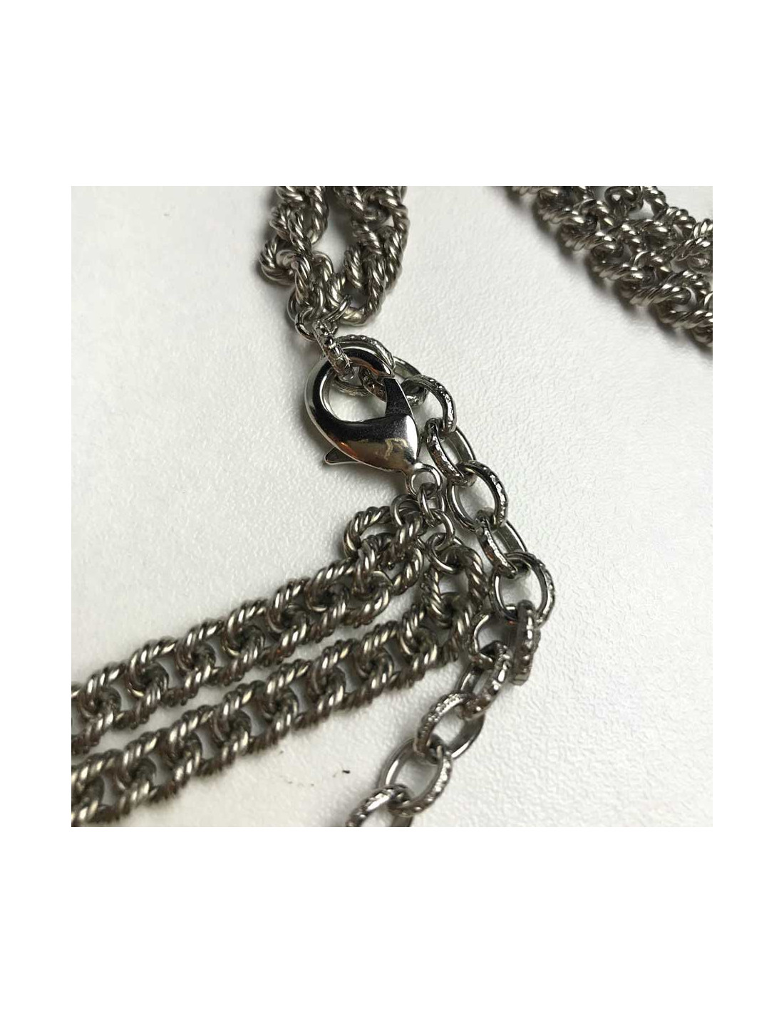 Le sautoir est en très bon état. Il mesure 90 cm au premier trou et 99 cm au trou le plus long. Il pèse 167 grammes. Comme l'indique son fermoir, il est issu de la Collection 2015 et il est Made In France.