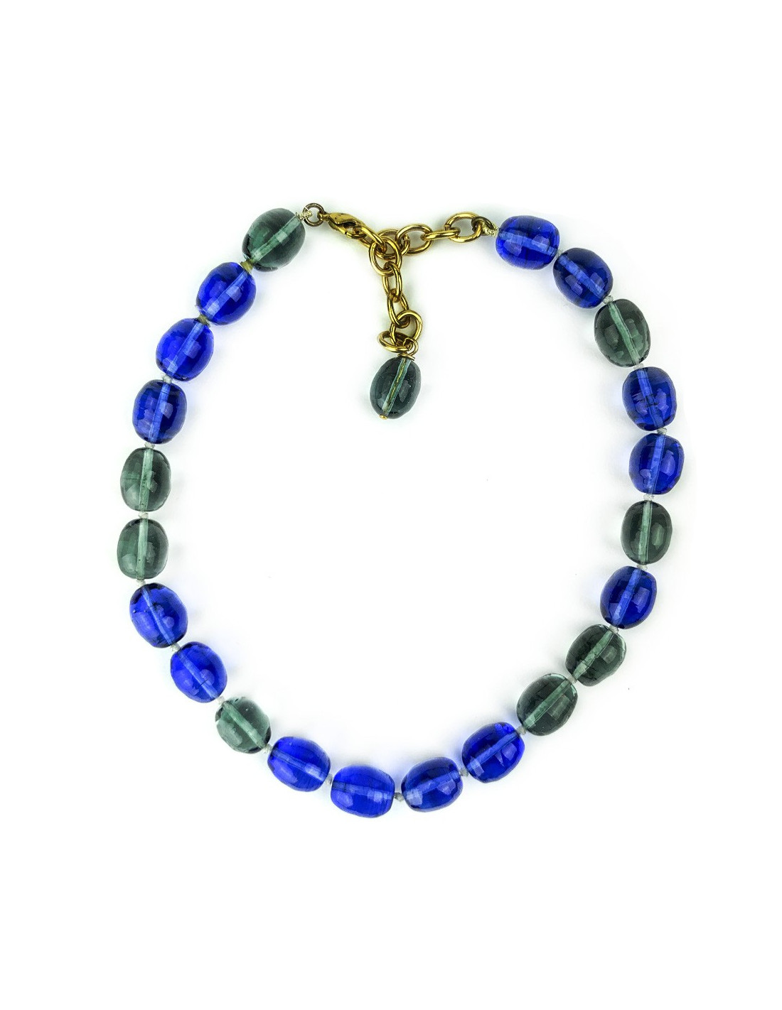 MARGUERITE DE VALOIS Collier pâte de verre bleu saphir et vert fumé