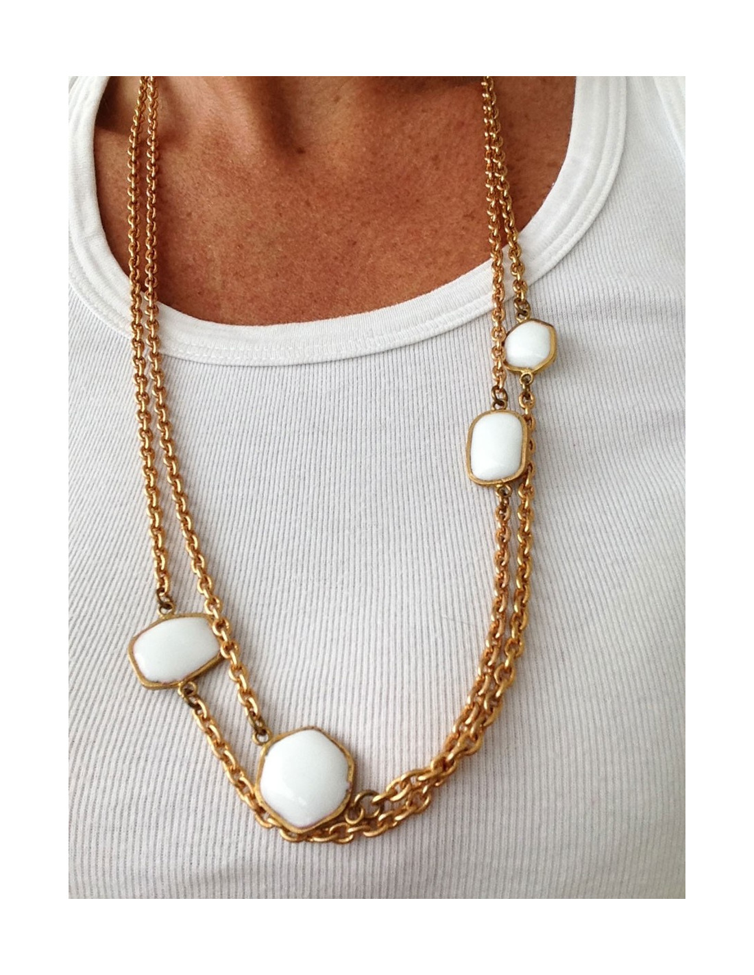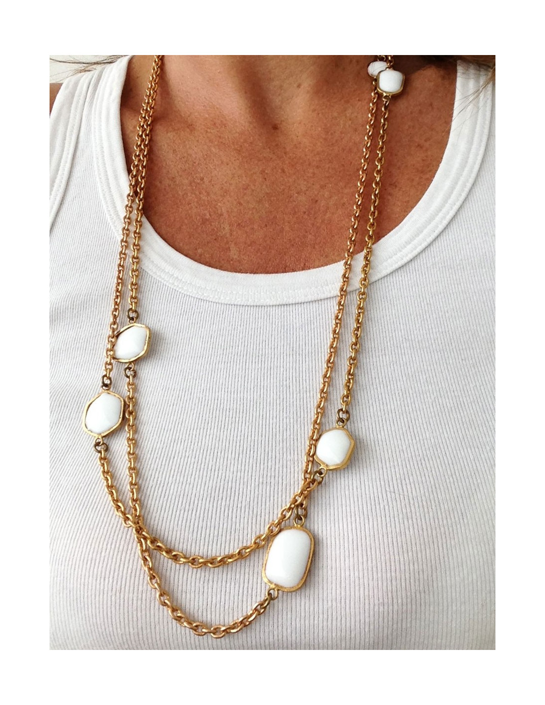Sautoir MARGUERITE DE VALOIS pâte de verre blanche et métal doré à l'or fin