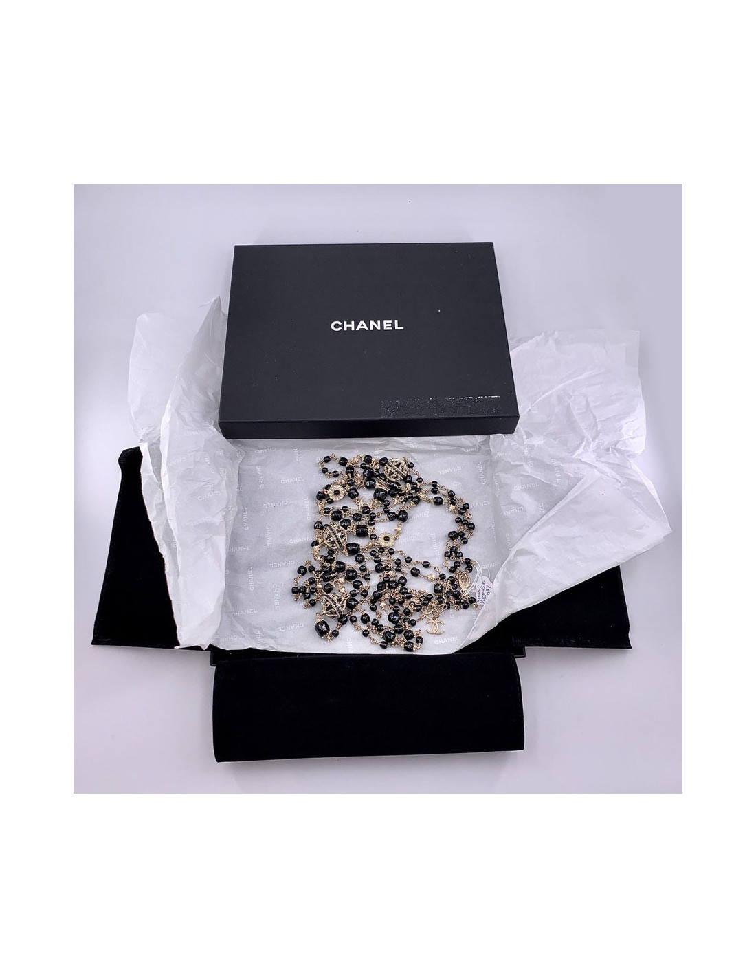 Le + Valois Vintage Paris: ce magnifique sautoir sera livré dans son dust bag et sa boîte CHANEL d'origine.