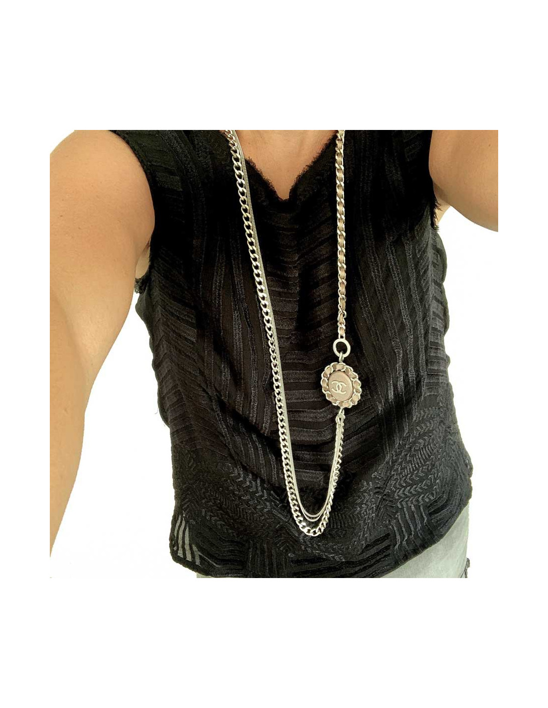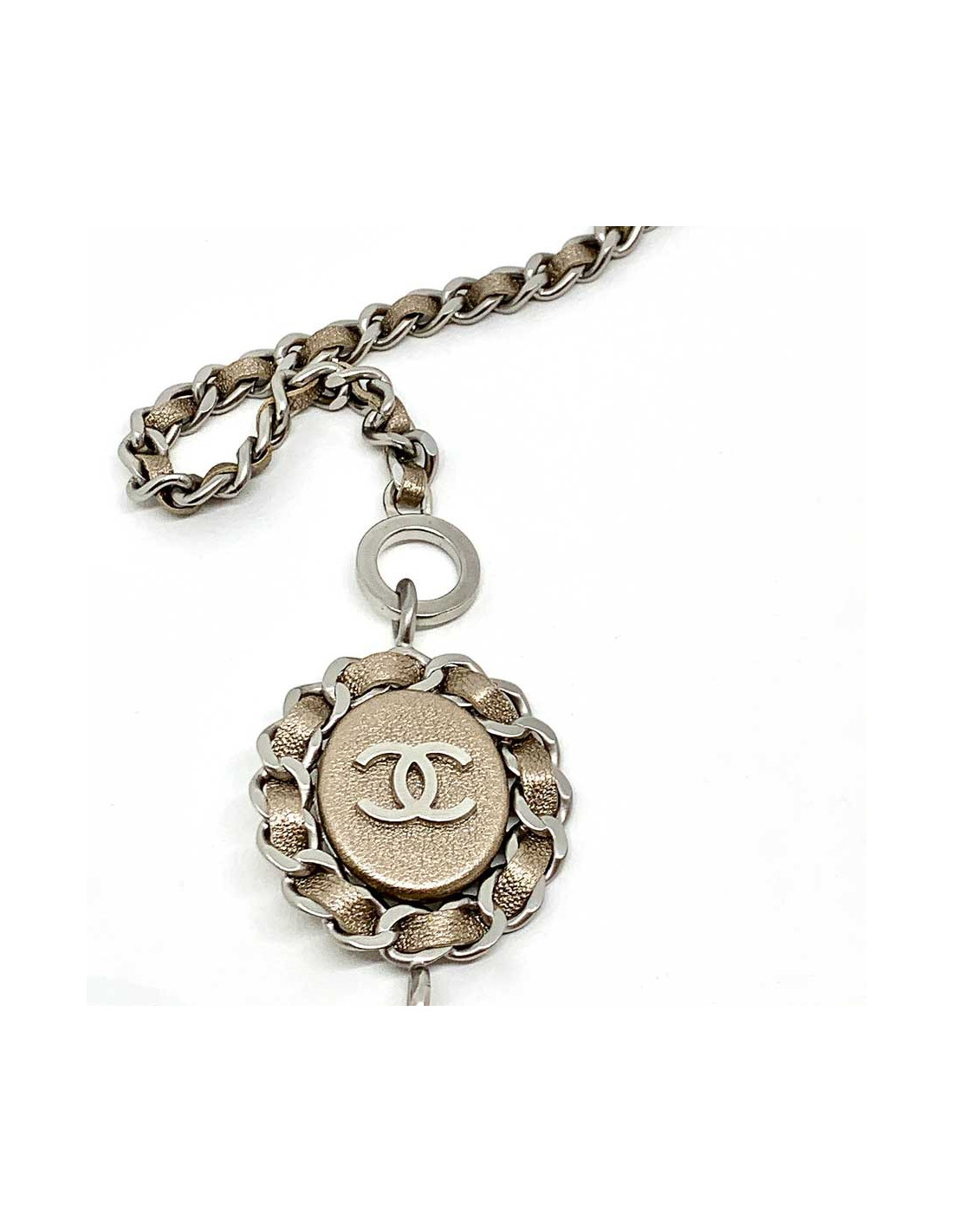 Caractéristiques du sautoir CHANEL argent et cuir métallisé