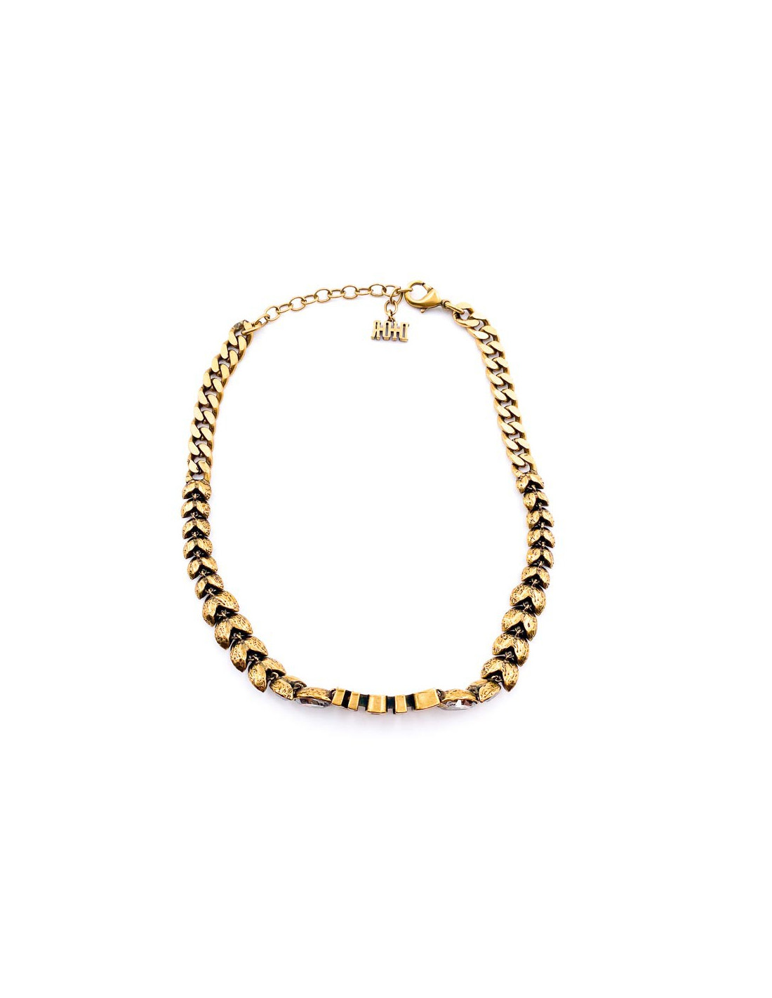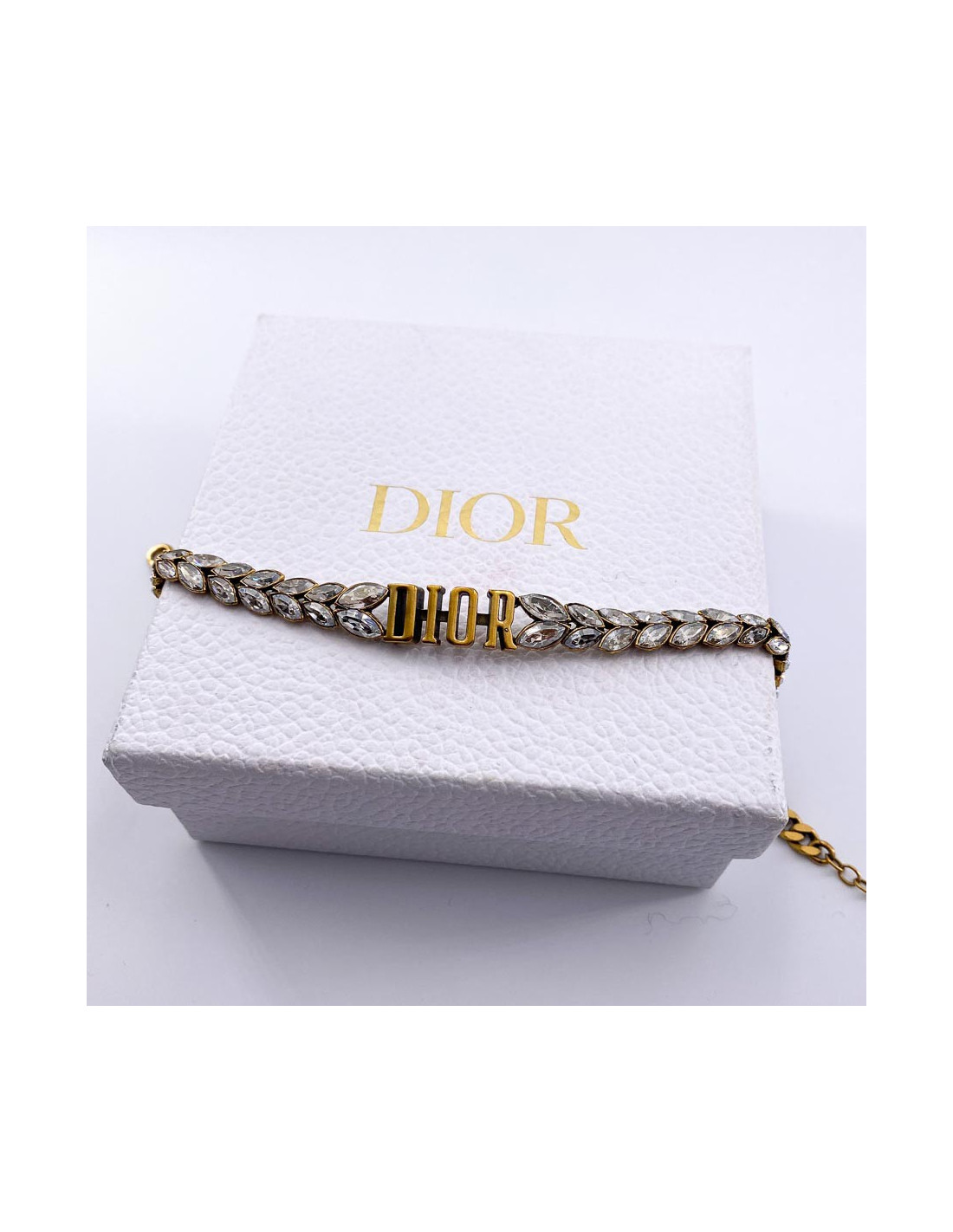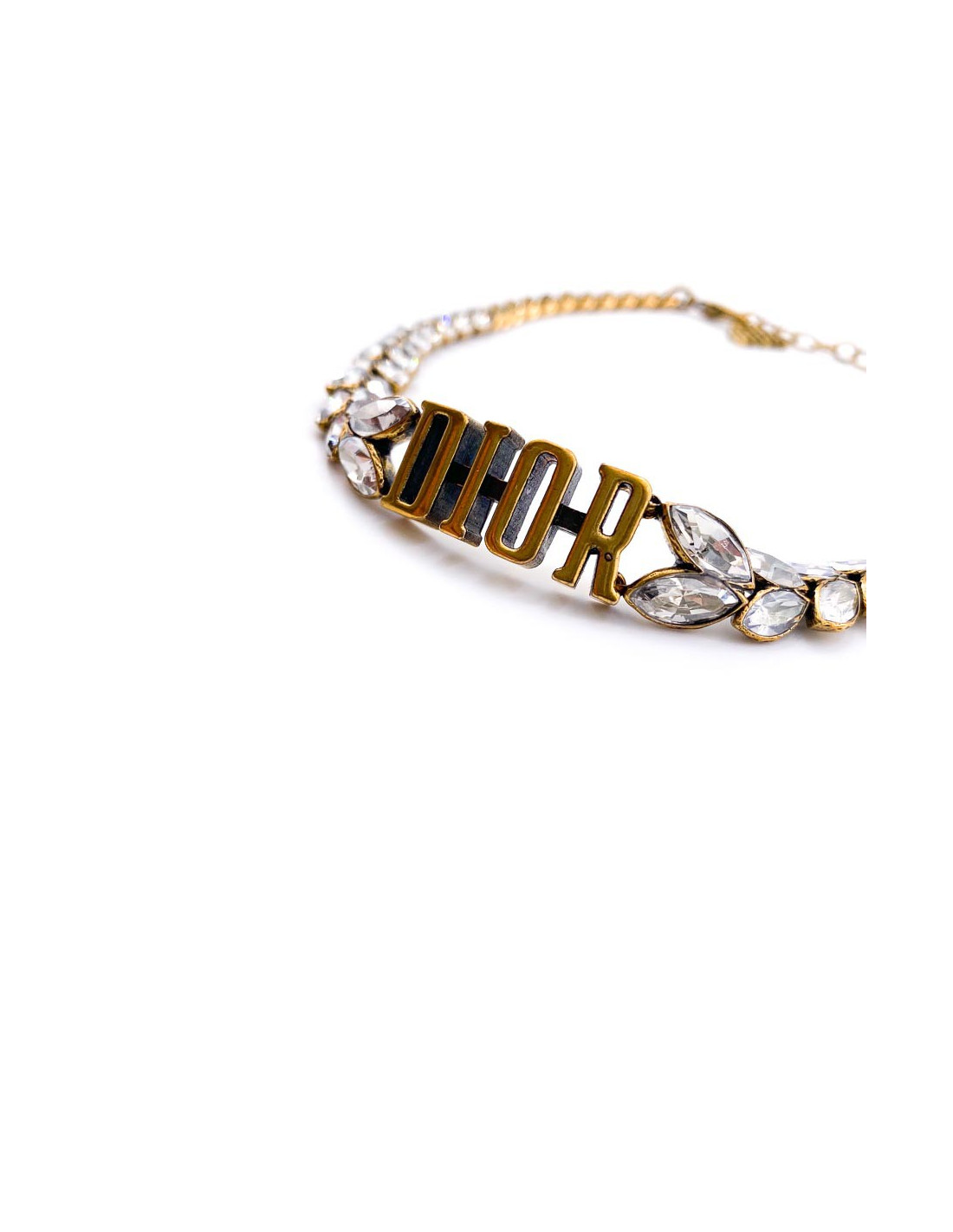 Le collier est de la Maison DIOR. Il se compose d'une chaîne en métal doré vieilli, sertie de strass. L'inscription DIOR prend place au centre du collier. Le bijou est à porter avec les créoles DIOR ref 28624. Retrouvez tout l'esprit DIOR dans ce bijou !