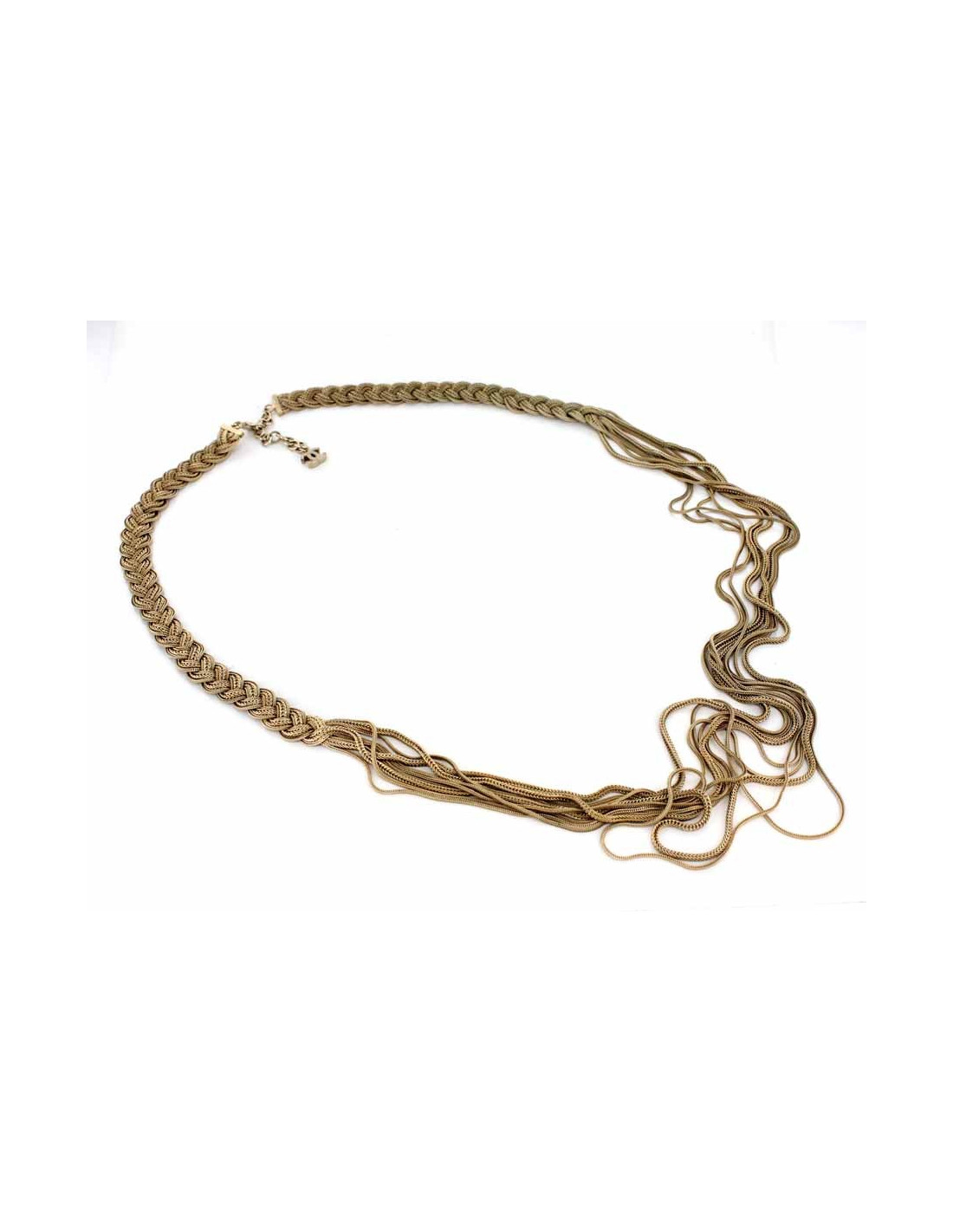 Superbe sautoir tressé CHANEL en métal doré vieilli.