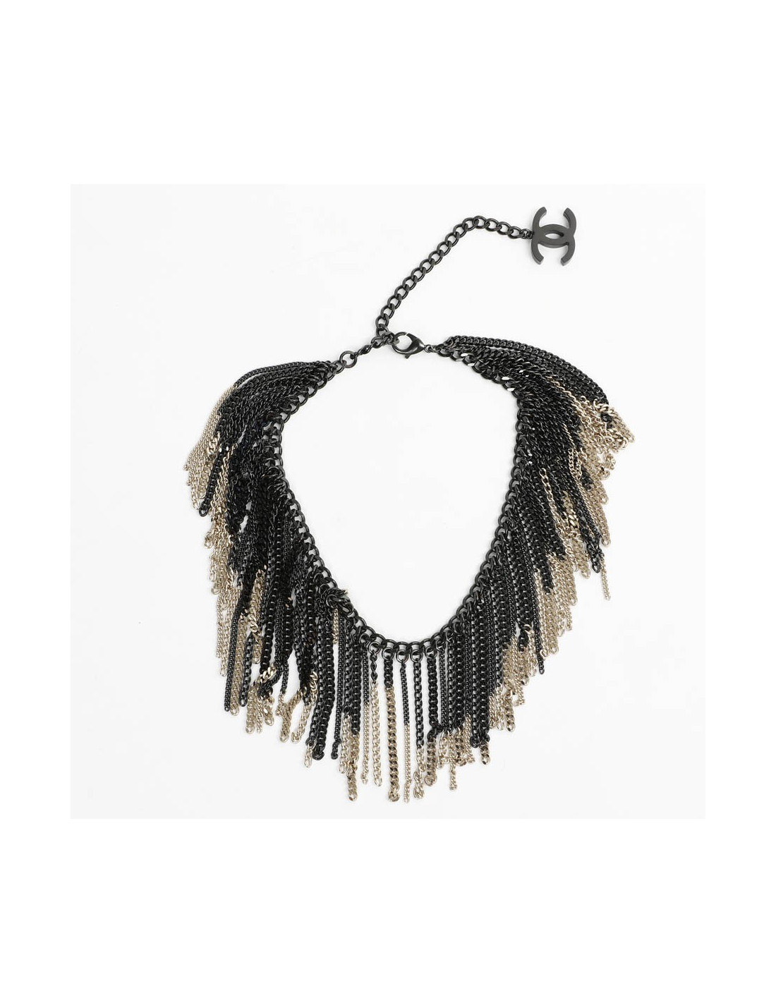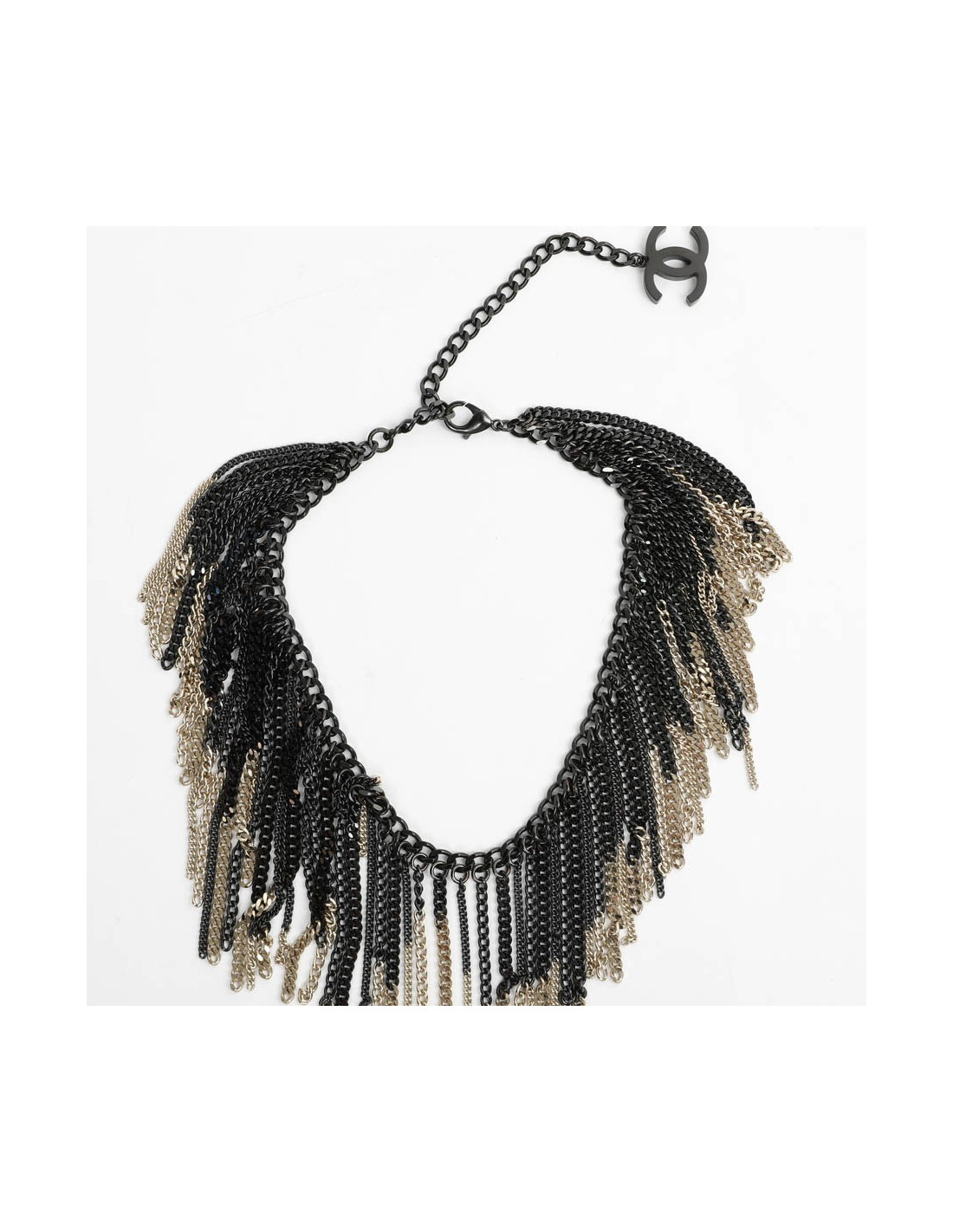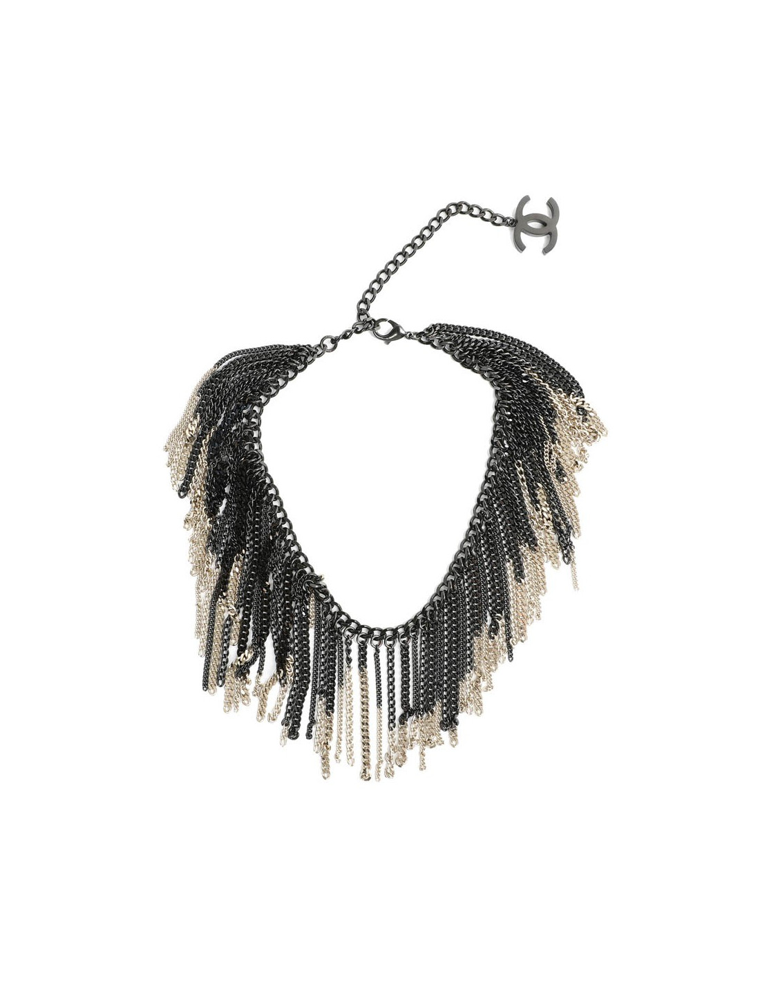 Collier CHANEL chaînes ruthénium et doré
