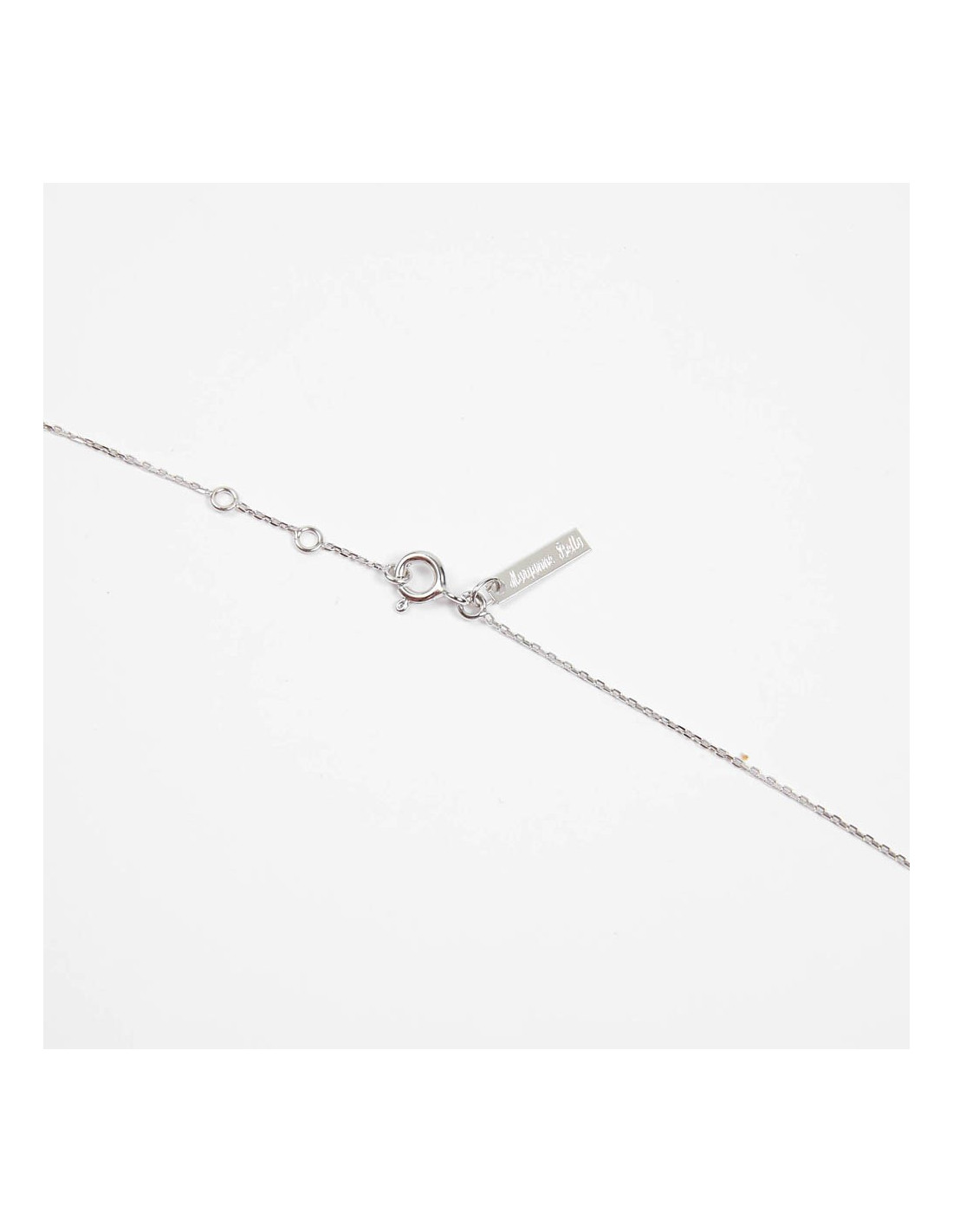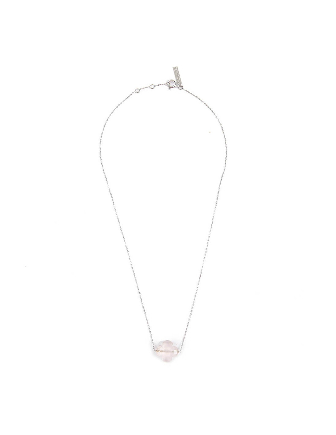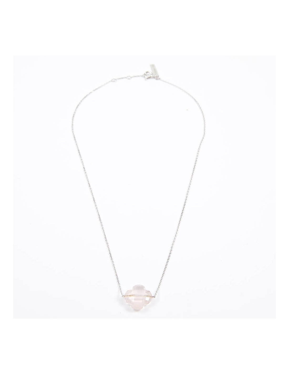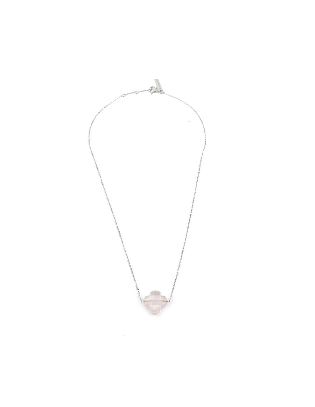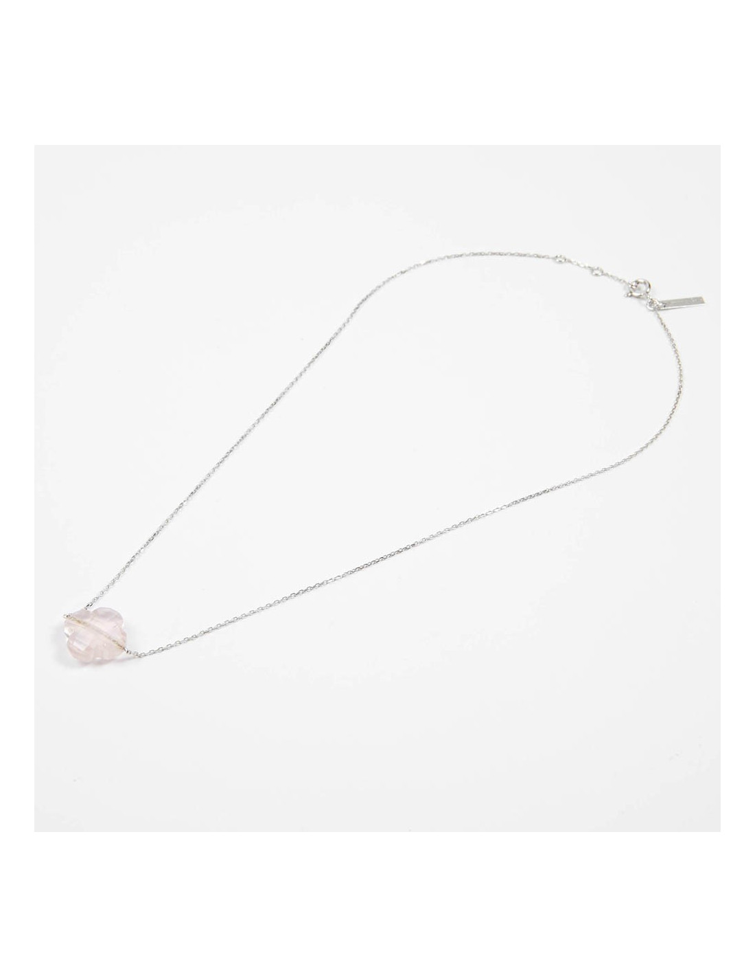 ce collier est très fin, et le trèfle est en quartz rose. Il est en or blanc.