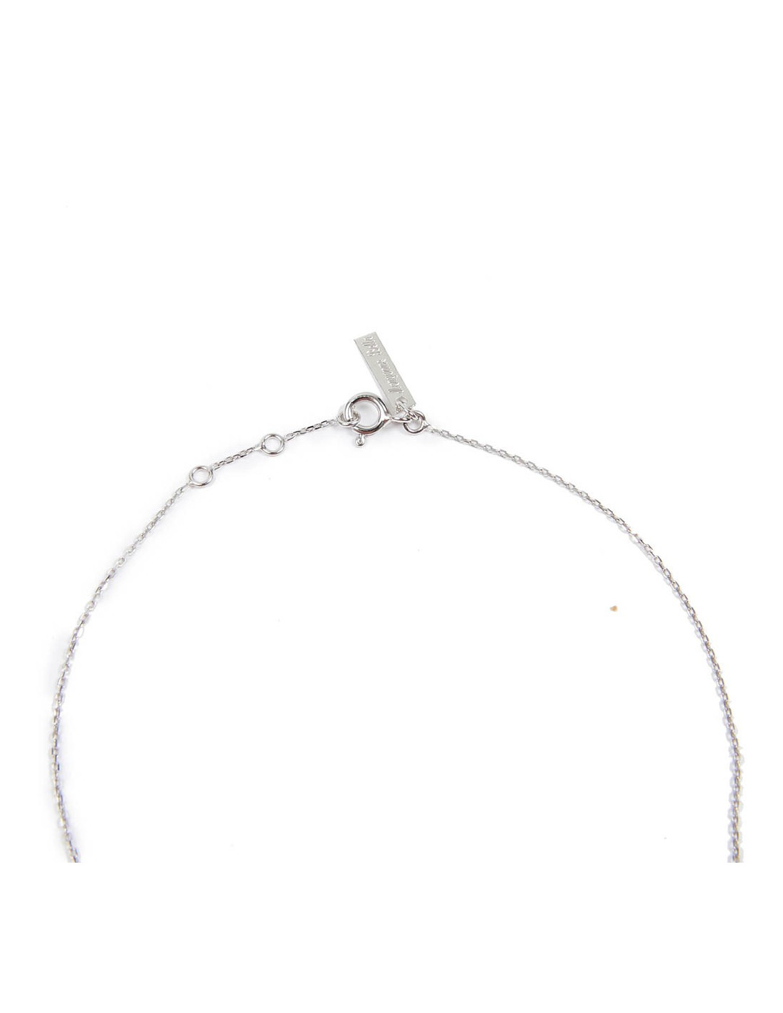 La longueur totale du collier en or blanc : 38 cm x 1.5 cm de diamètre pour le trèfle en quartz. En très bon état. fabrication française.