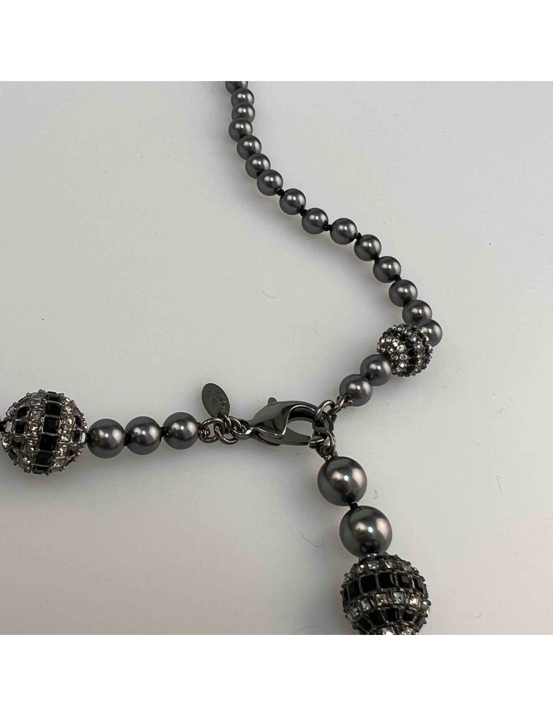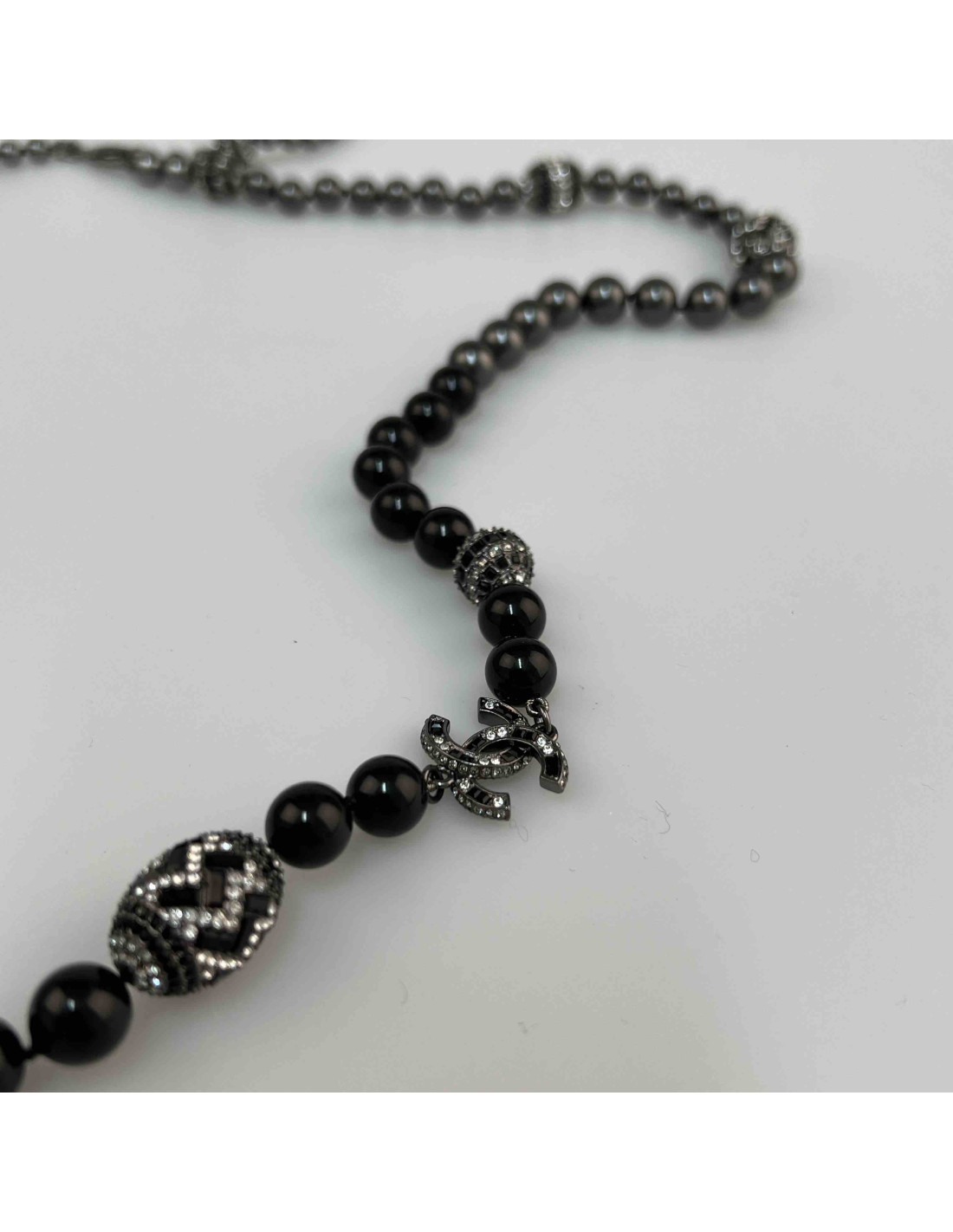 Sautoir CHANEL perles grises boules strass