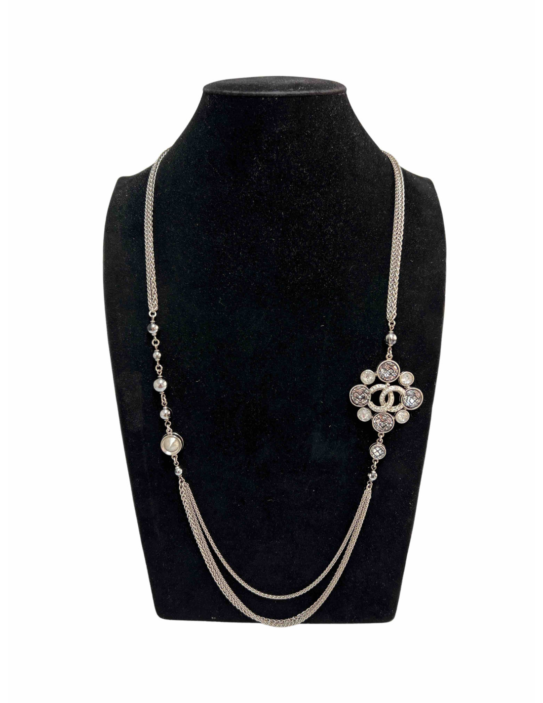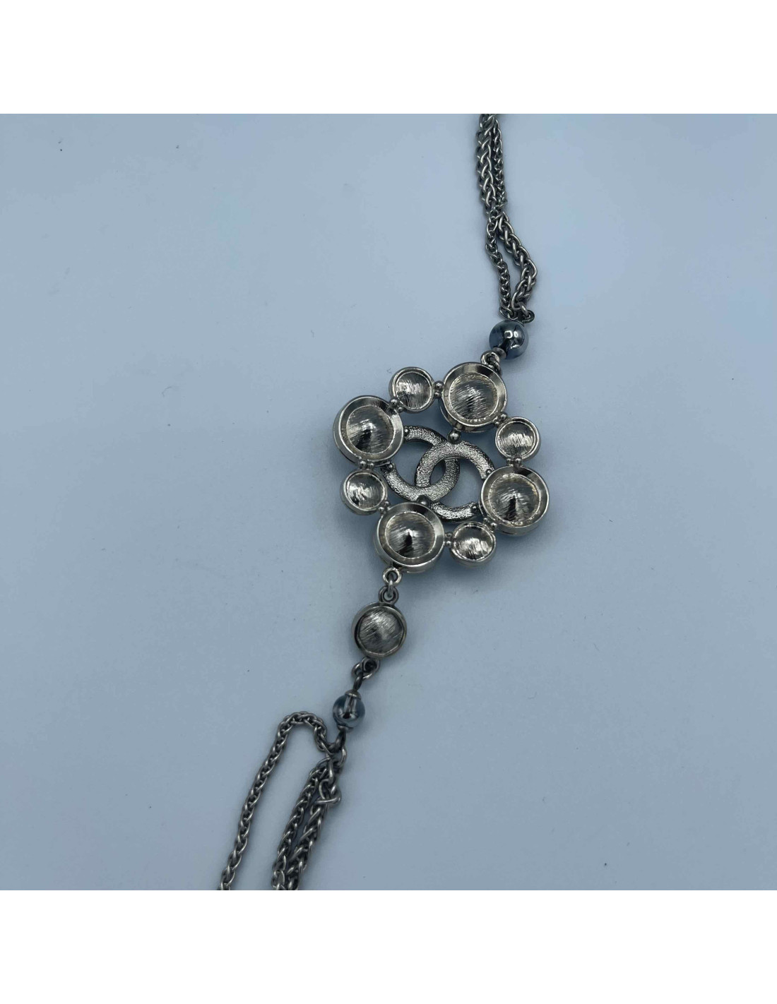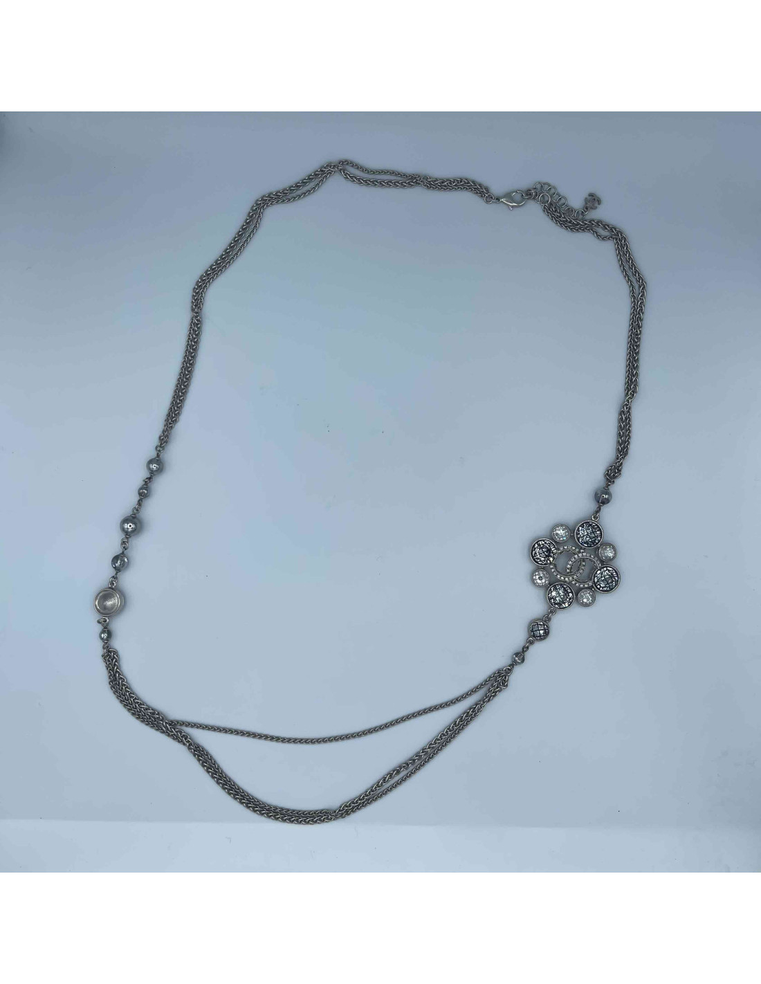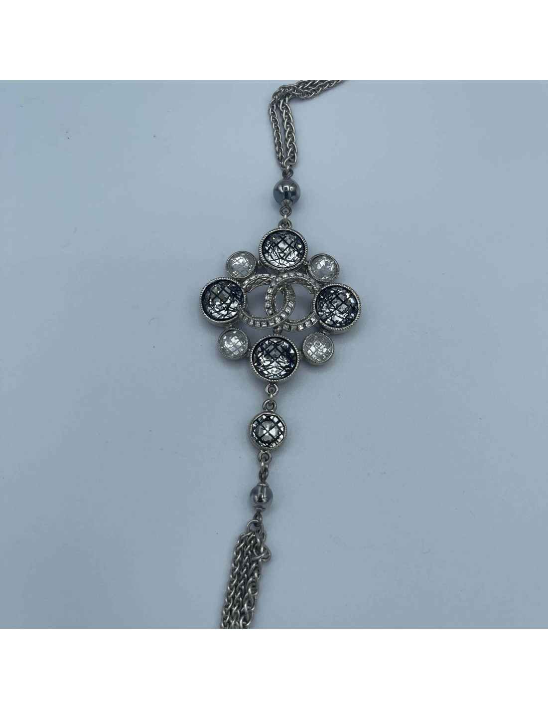 Imposant Sautoir CHANEL brillants Métal argenté