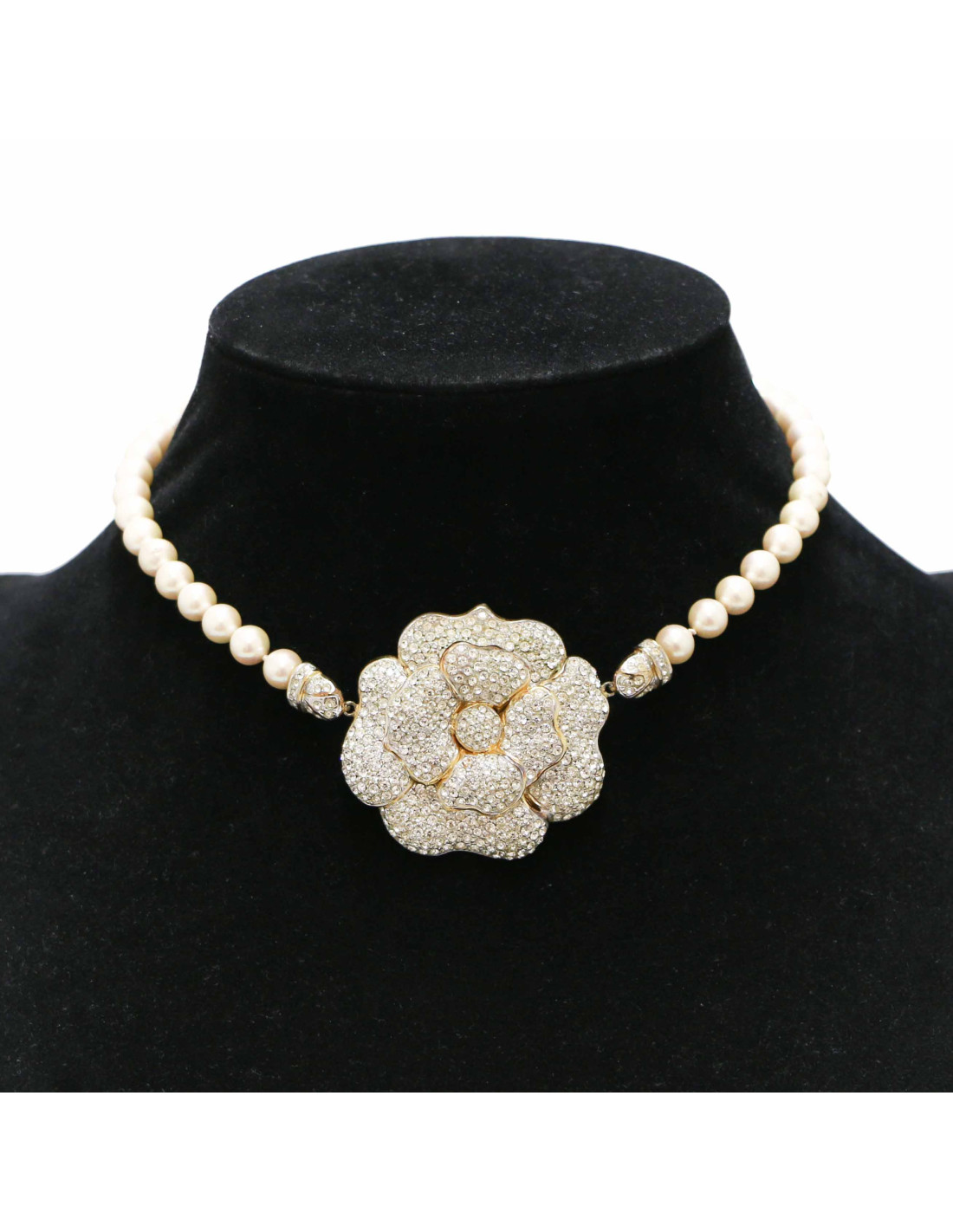 Dimensions : perle 0.7 cm, camélia : 5.5 x 5 cm, longueur totale : 41 cm