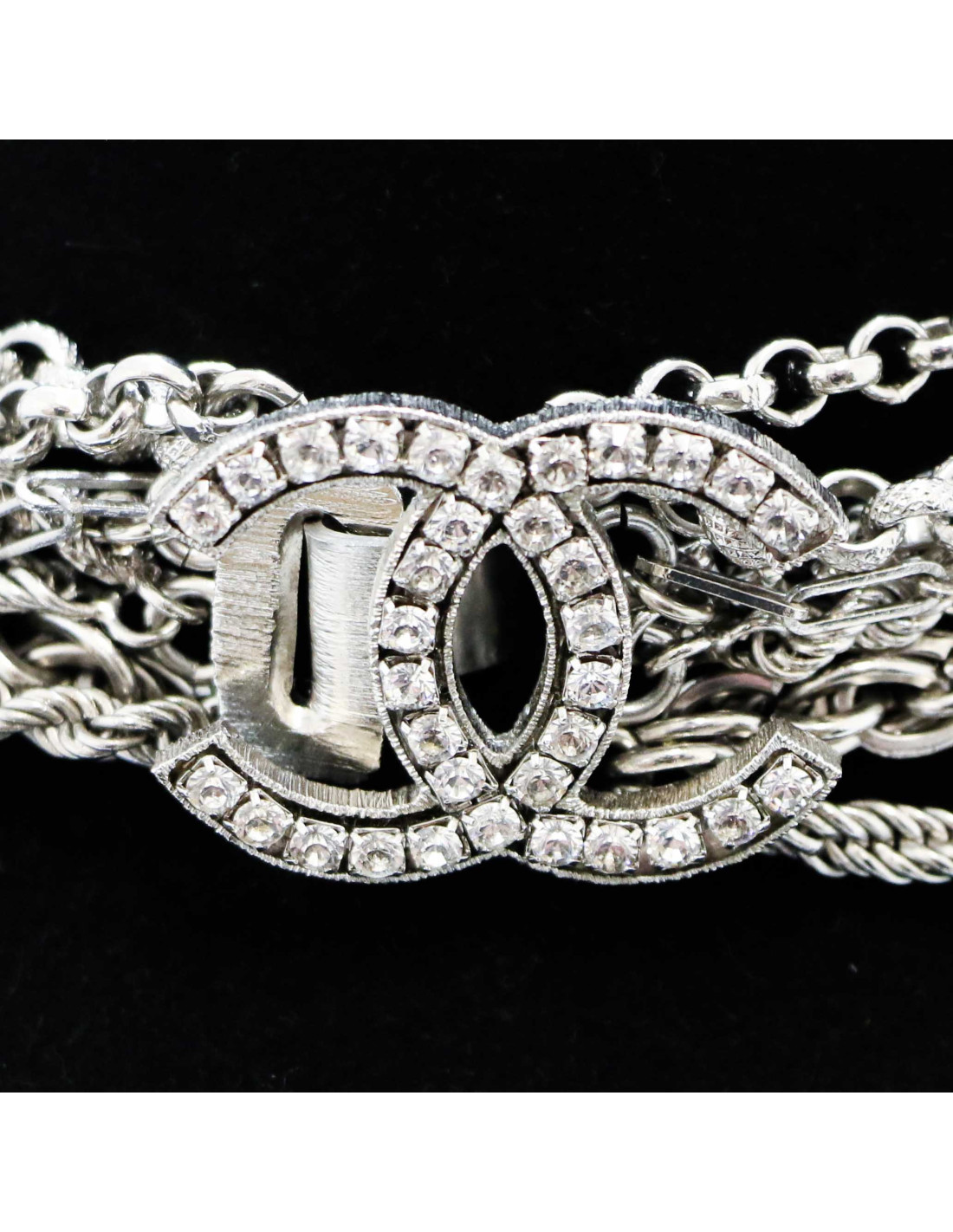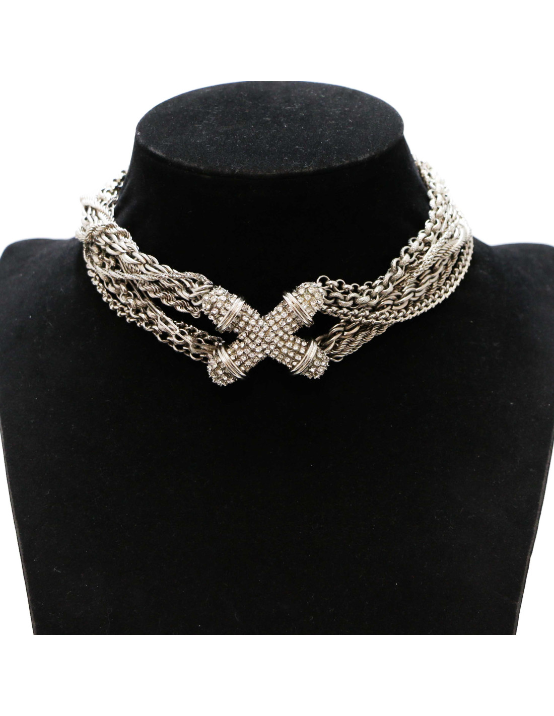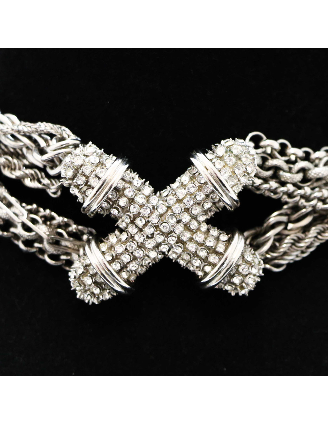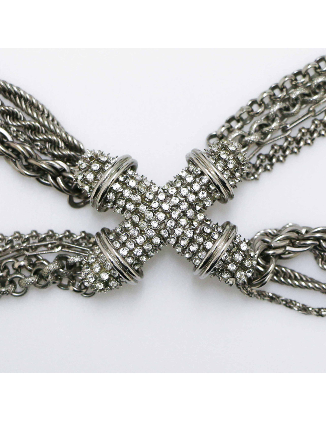 Détails : collier torsadé multi chaînes, croix en et fermoir CC en strass