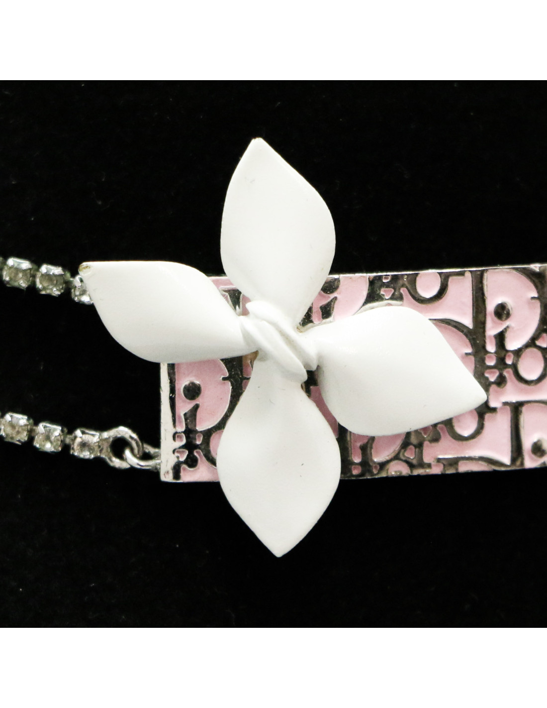 Détails : fermoir crochet, la longueur est ajustable sur 5.5 cm. Plaque émaillé DIOR façon oblique.