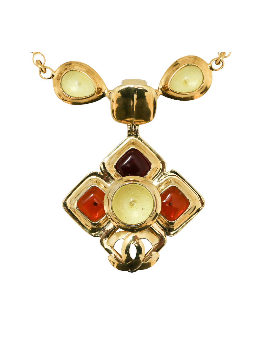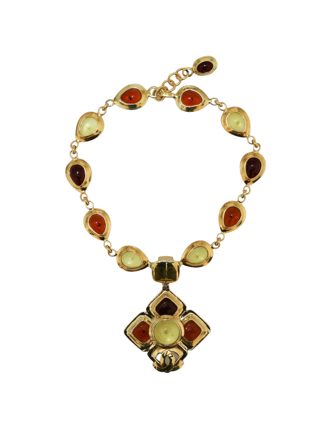 Détails : collier court avec un gros pendentif en forme de losange, emblématique CC sur le pendentif.