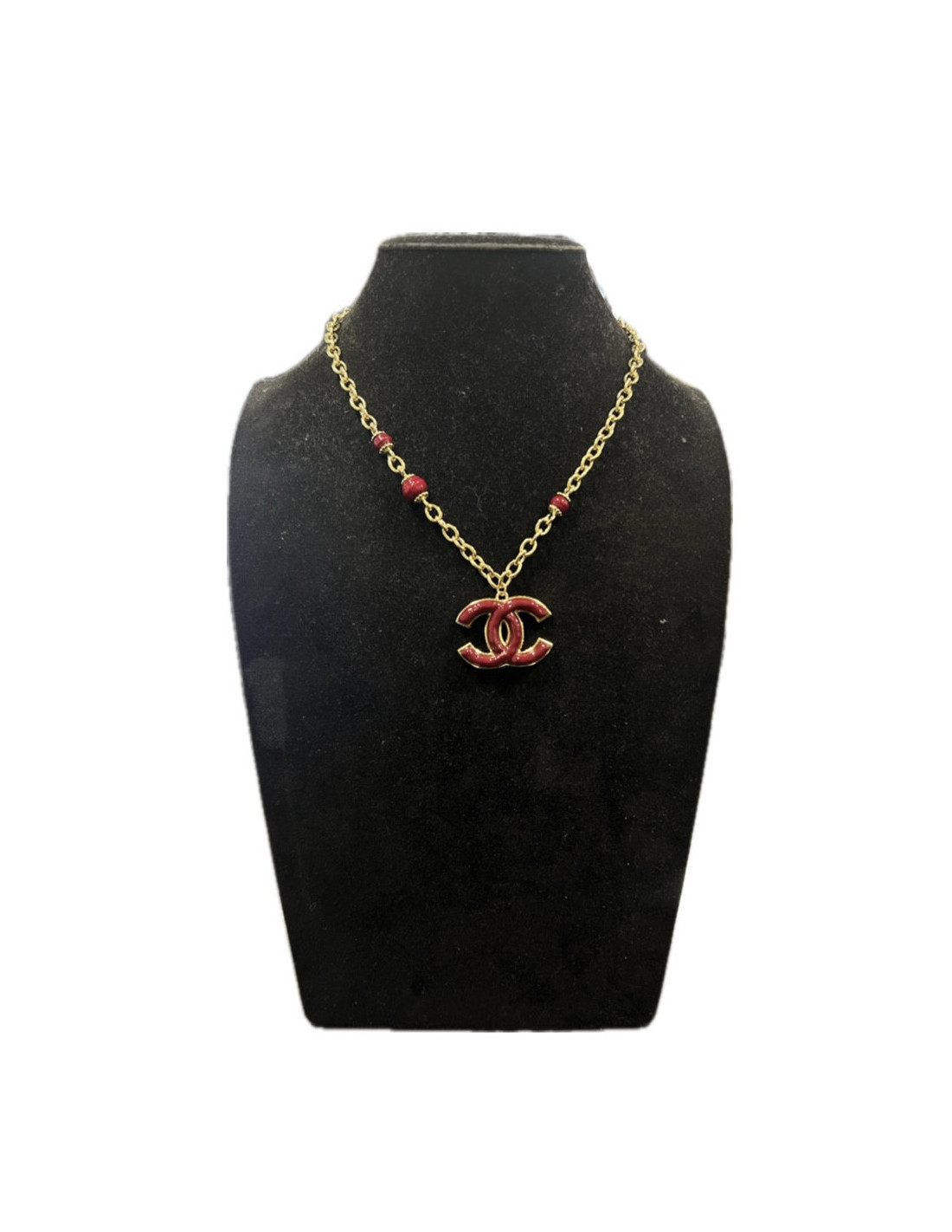 Collier CC rouge CHANEL métal doré