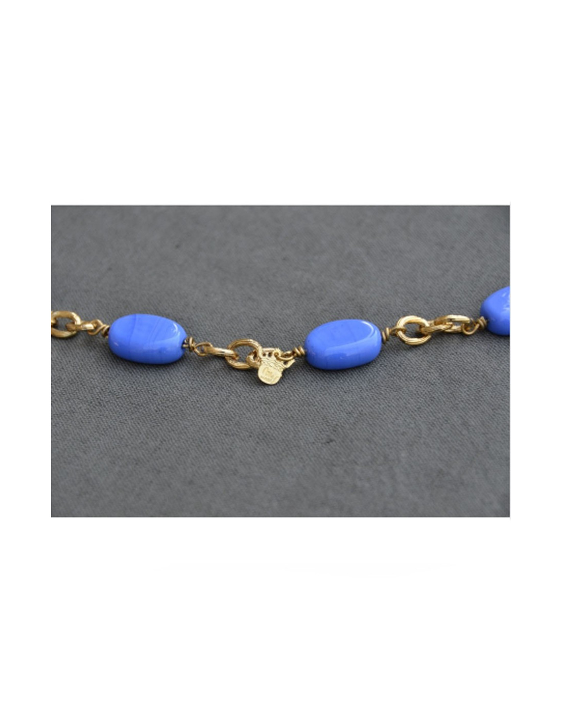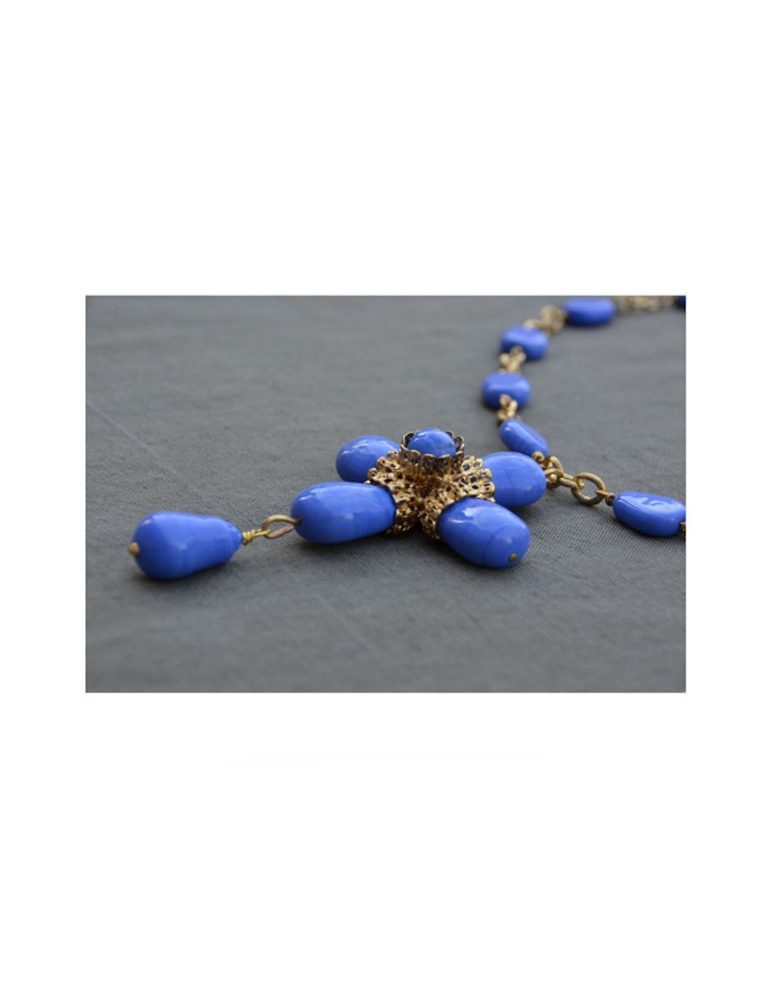 Sautoir Croix Marguerite de Valois en pâte de verre bleue et métal doré à l'or fin.