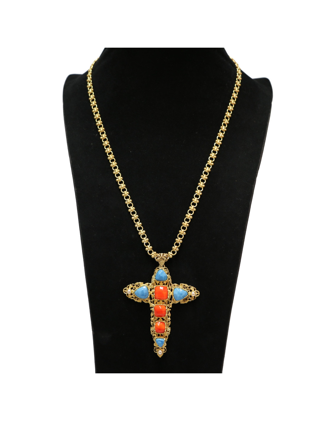 Mesures : croix 10 x 7,5 cm, longueur chaîne 70 cm