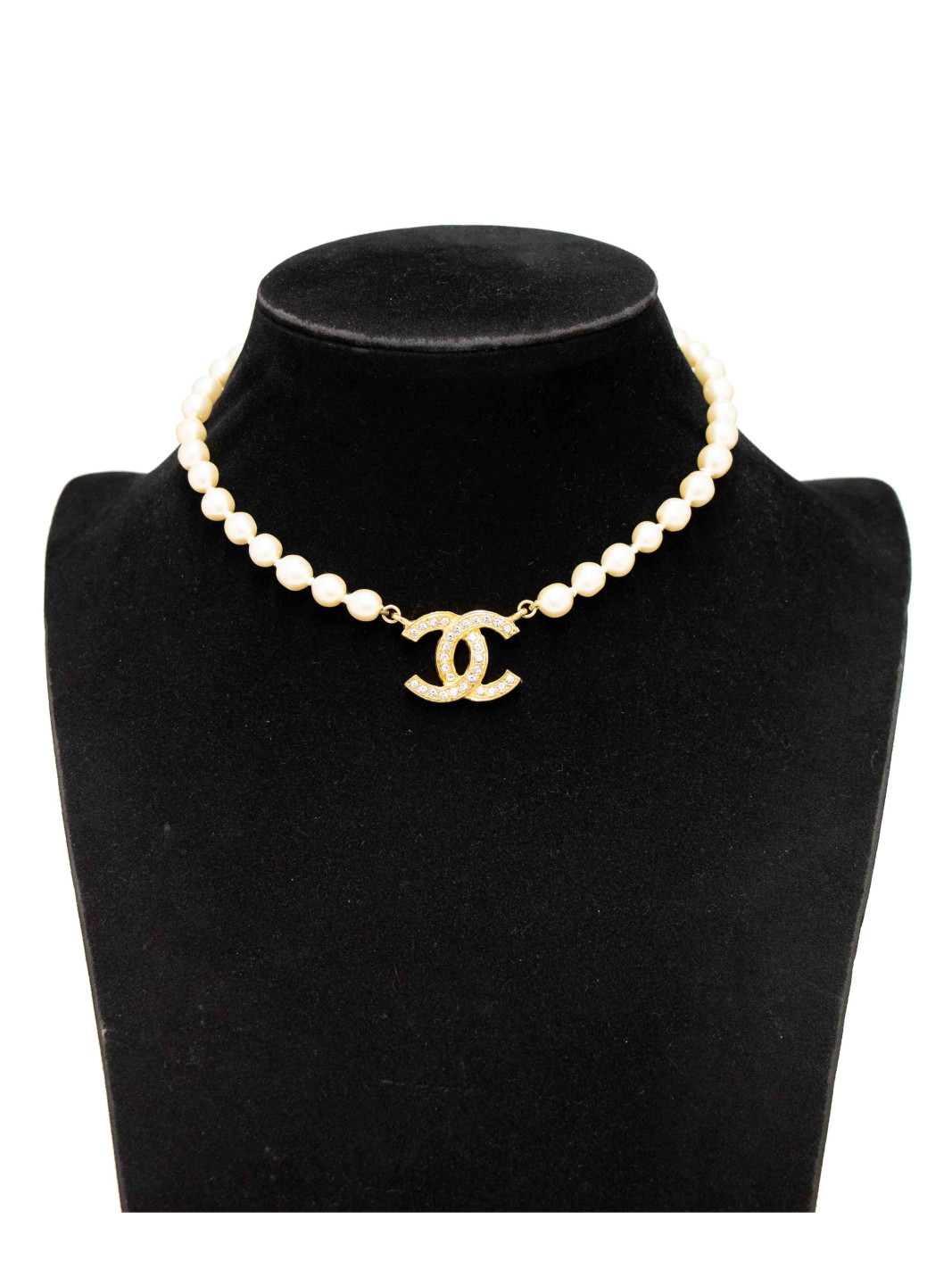 Collier perles double CC strass Chanel