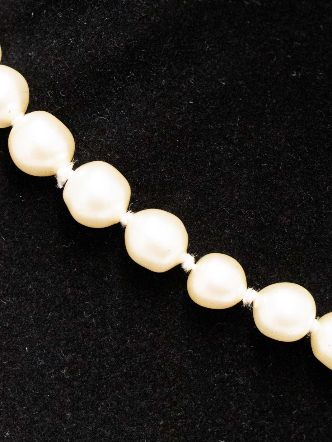 Ce collier se compose d’un rang de perles nacrées en pâte de verre, offrant un rendu naturel et raffiné. Chaque perle est soigneusement nouée, assurant un tombé souple et harmonieux autour du cou.