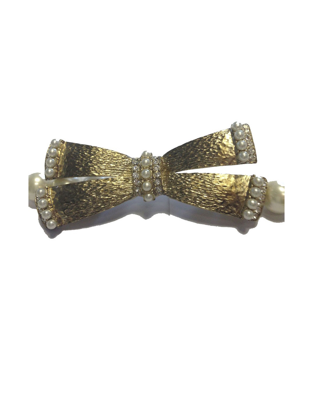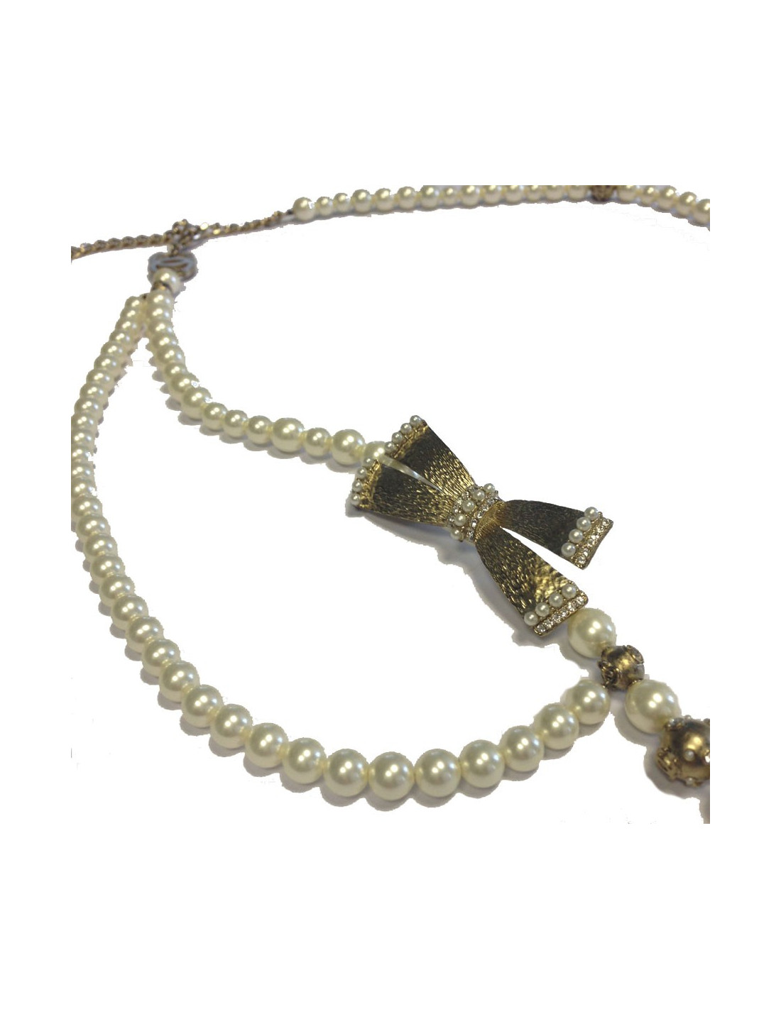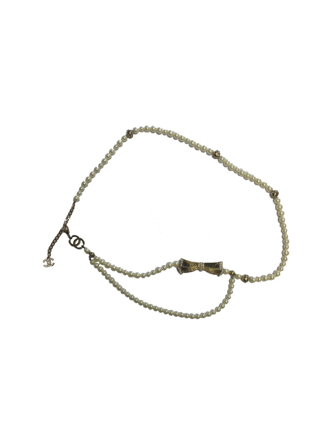 Superbe ceinture Chanel en perles nacrées et noeuds pavés de mini perles et strass, quelques perles en métal doré siglées CC.