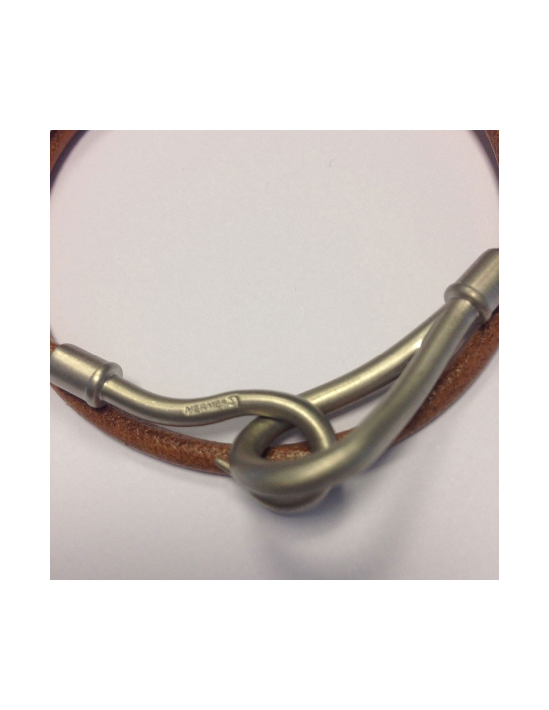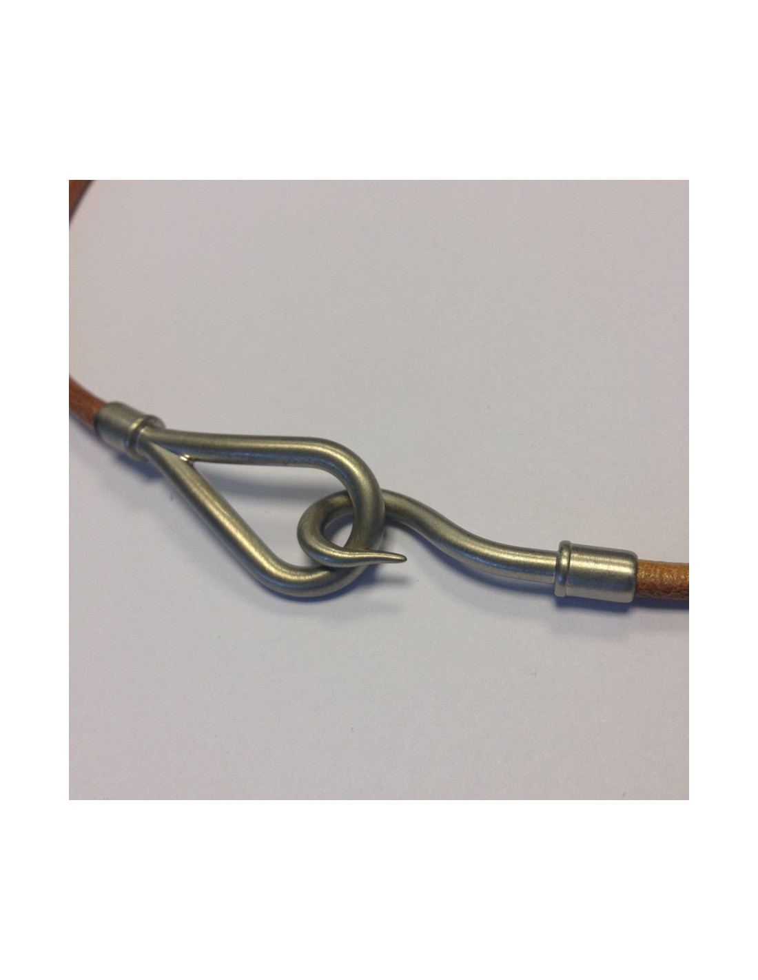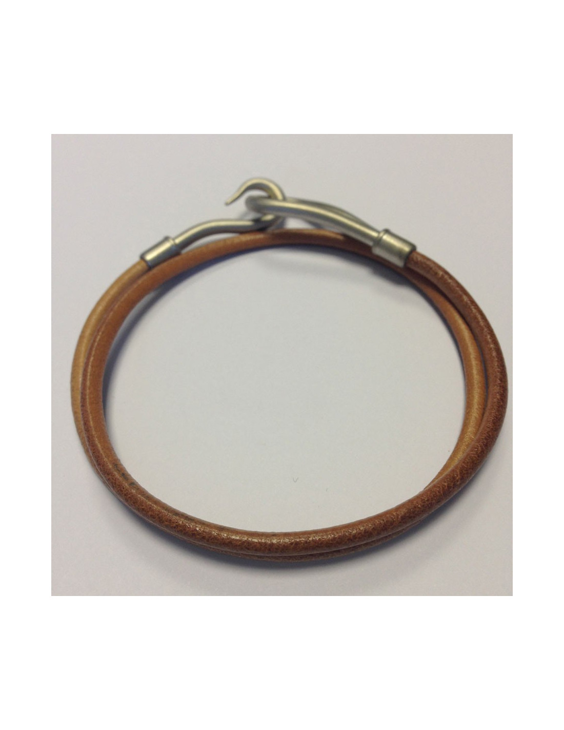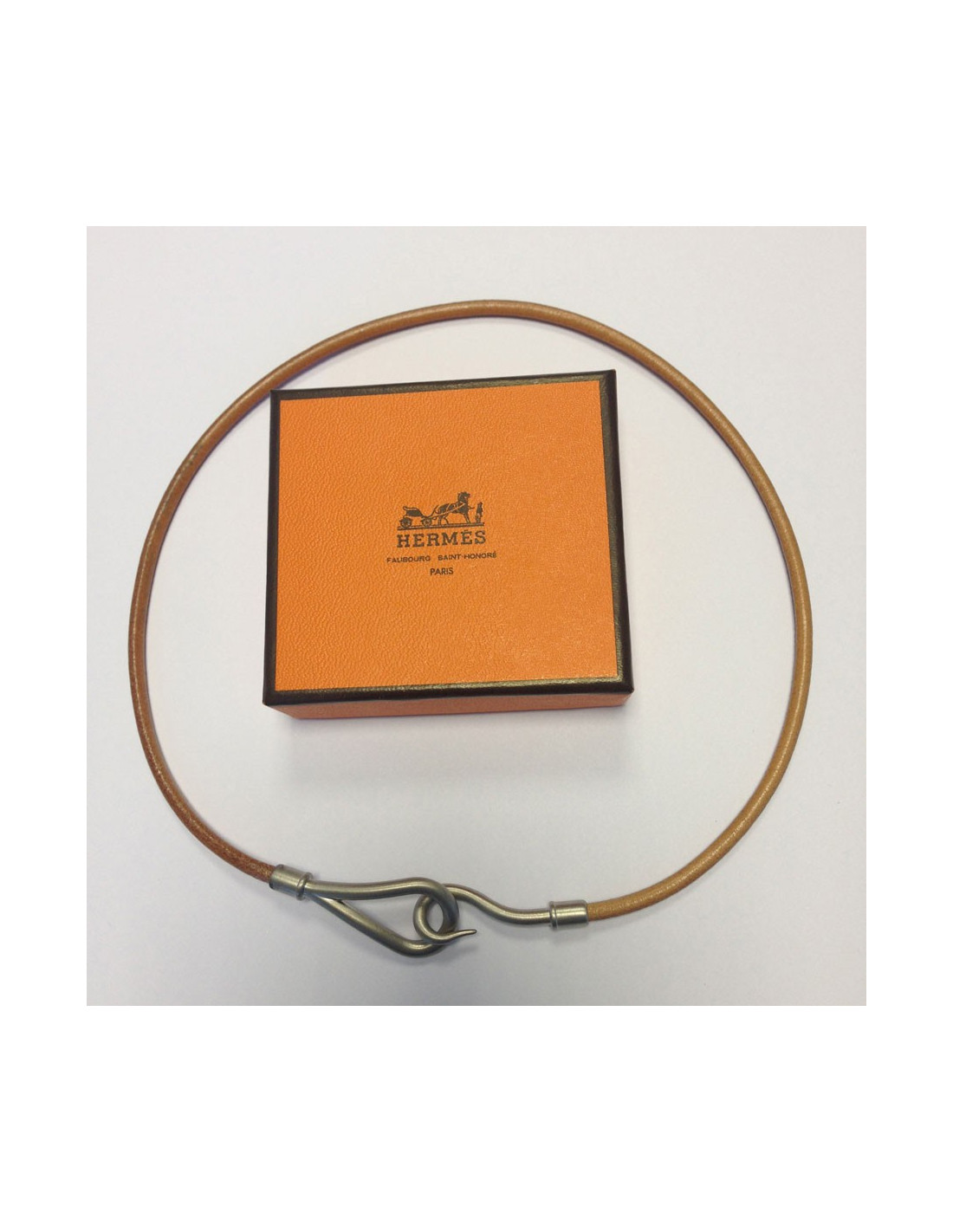 Collier Jumbo HERMES lien cuir & métal argent brossé