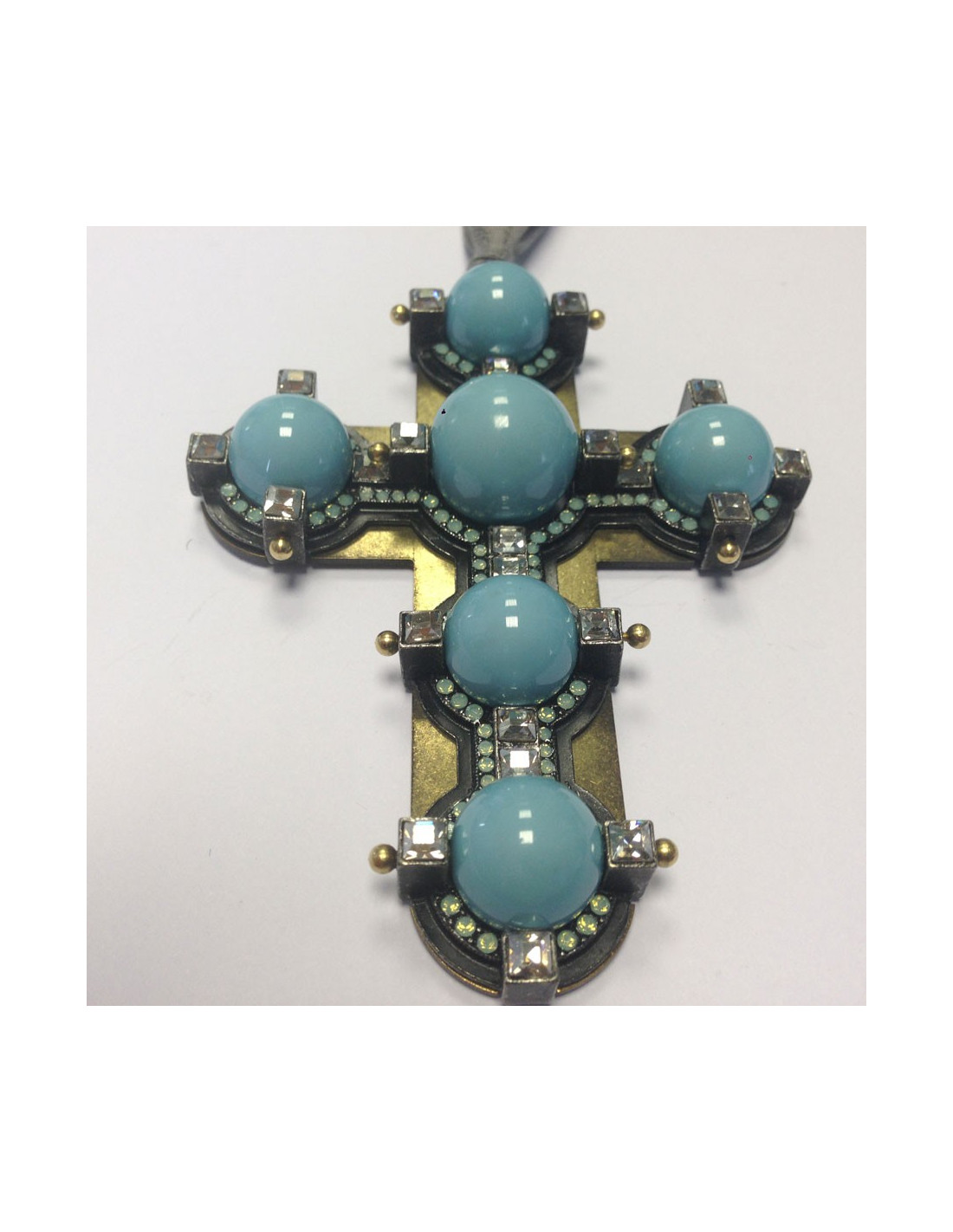 Collier LANVIN croix turquoise et strass Swarovski