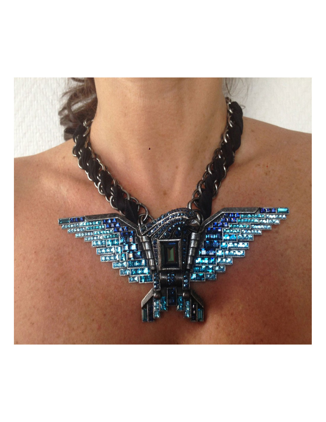 Collier LANVIN aigle articulé strass bleus et métal