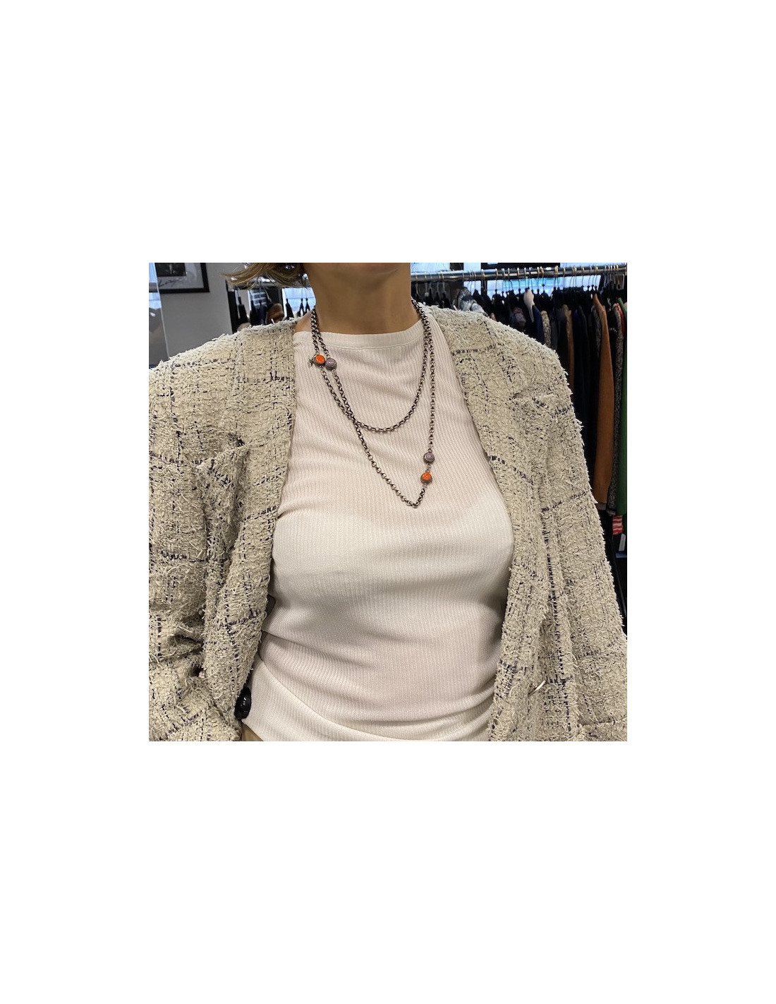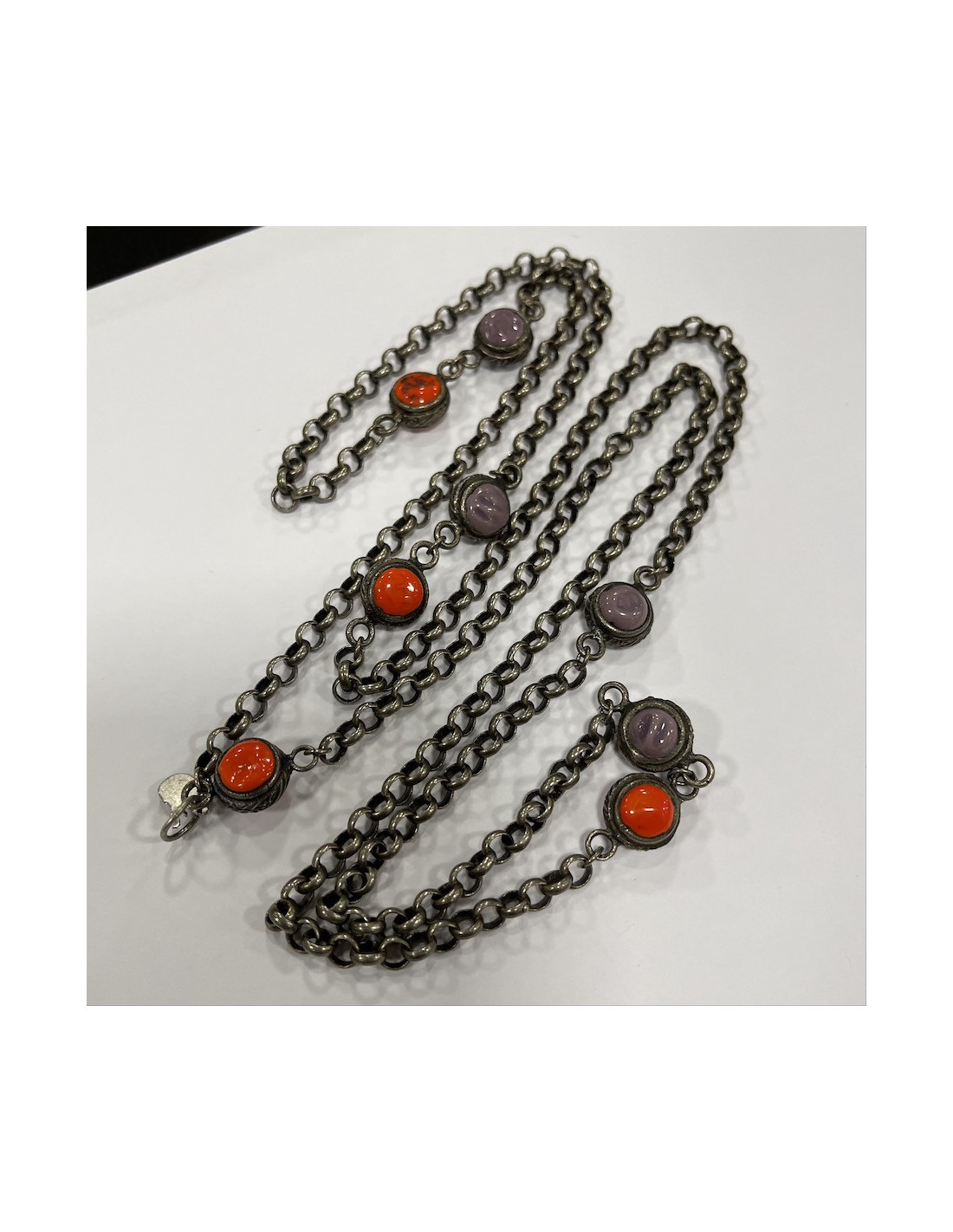 Dimensions : longueur totale : 110 cm, longueur des cabochons : 1 cm