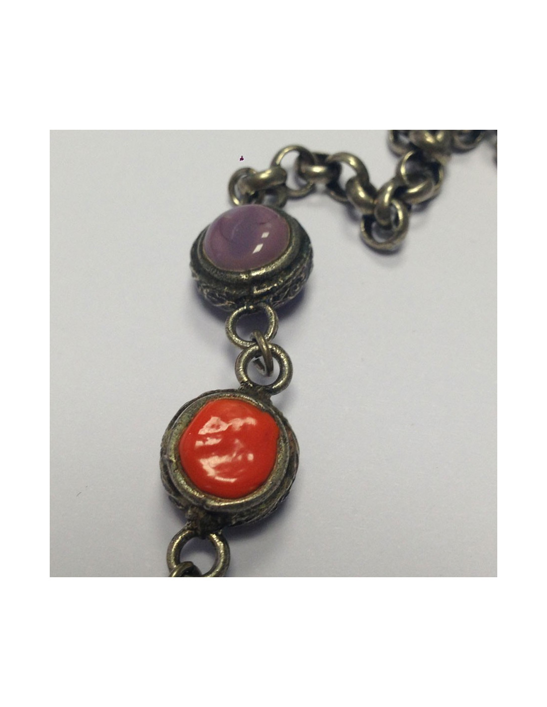 Détails : sautoir avec cabochons en pâte de verre entièrement réalisés à la main en France
