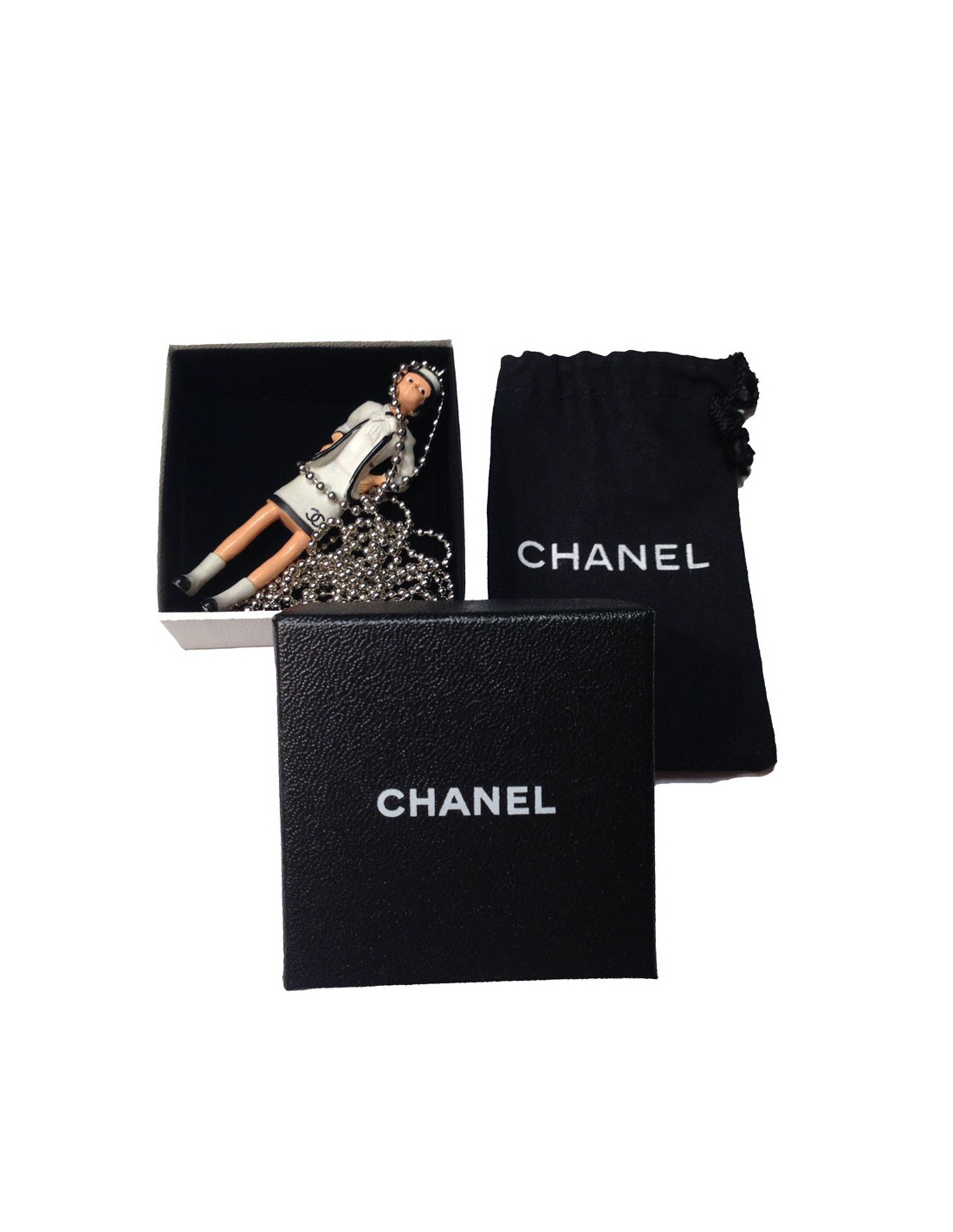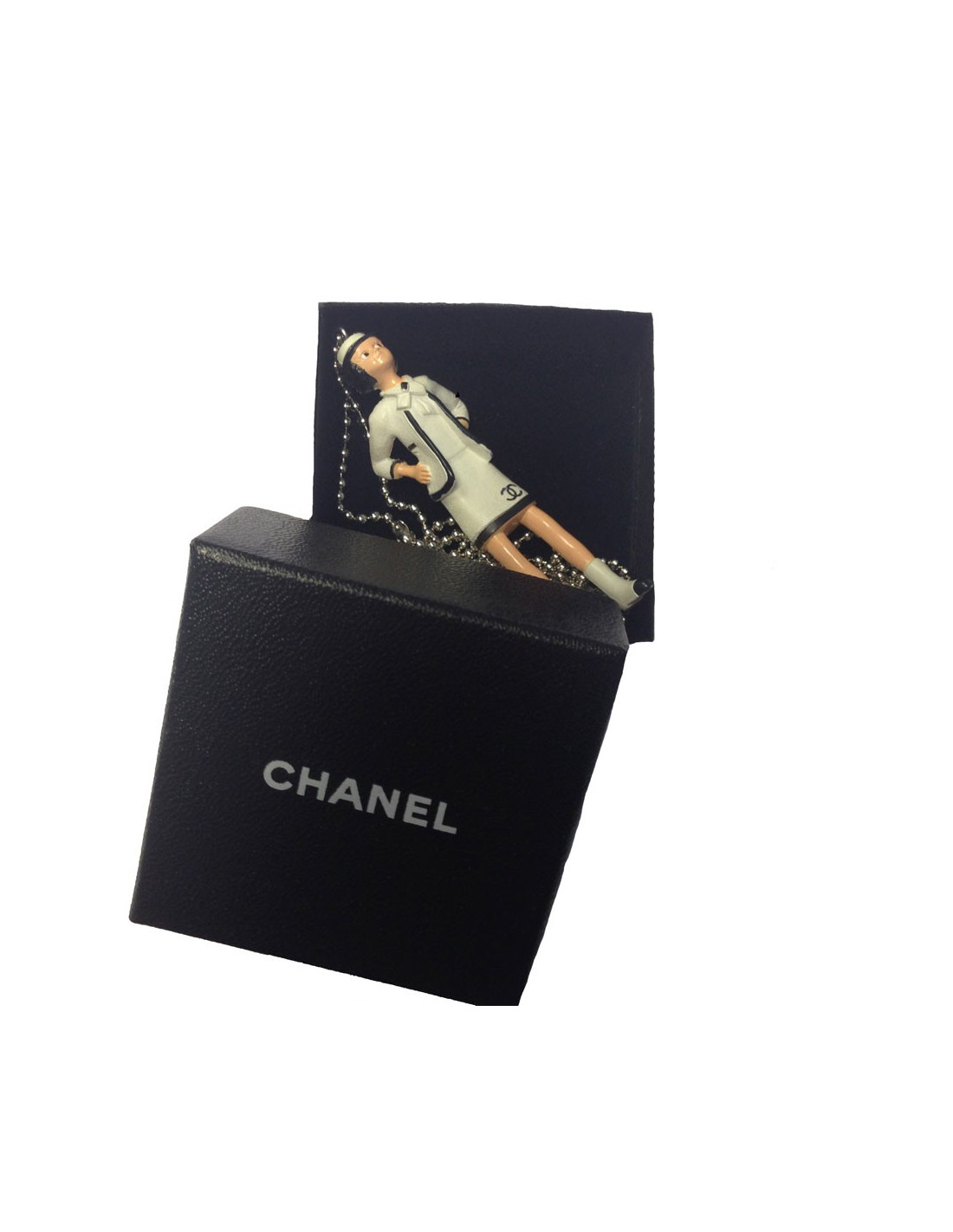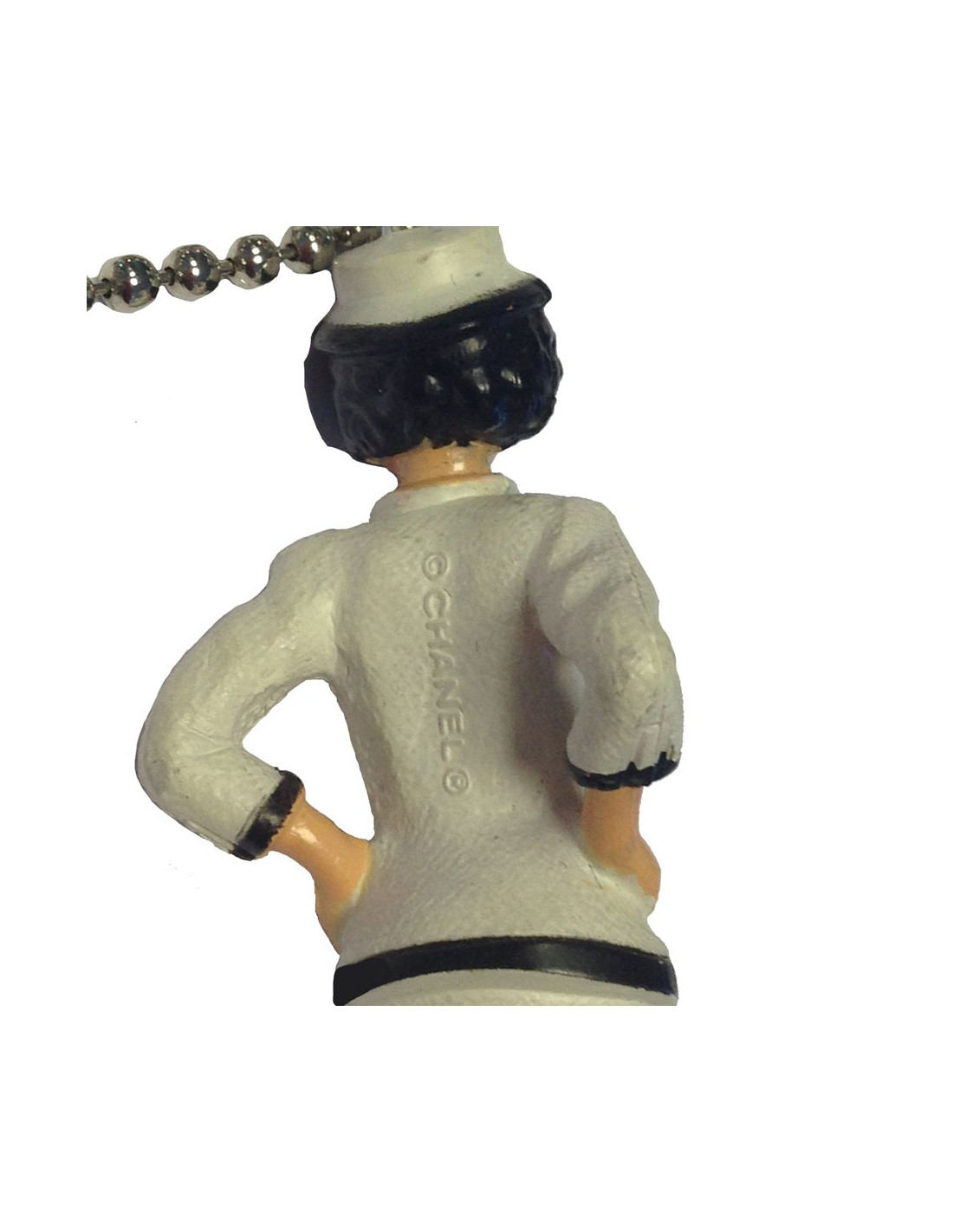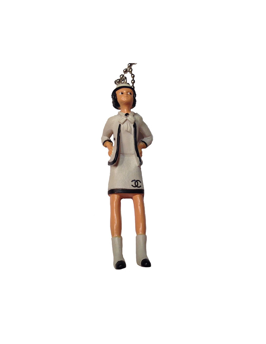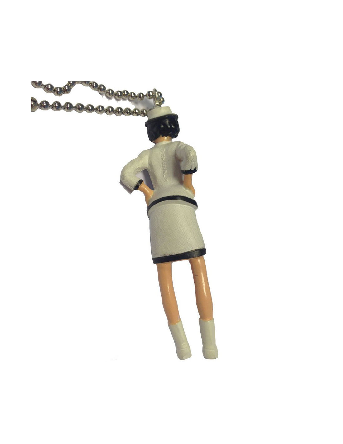 Collector!!! Collier "Coco" CHANEL avec un pendentif figurine Coco en plastique. La chaîne est en métal argenté.