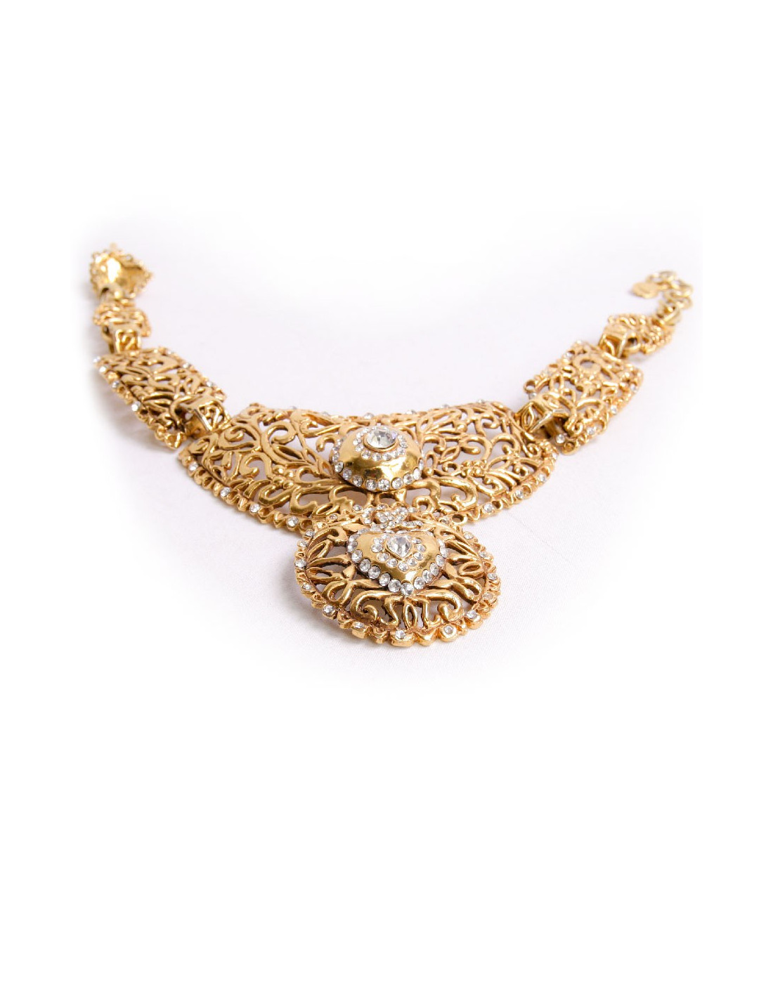 Pièce collector ! Magnifique Collier Christian lacroix, très travaillé, en métal doré à l'or fin et strass.