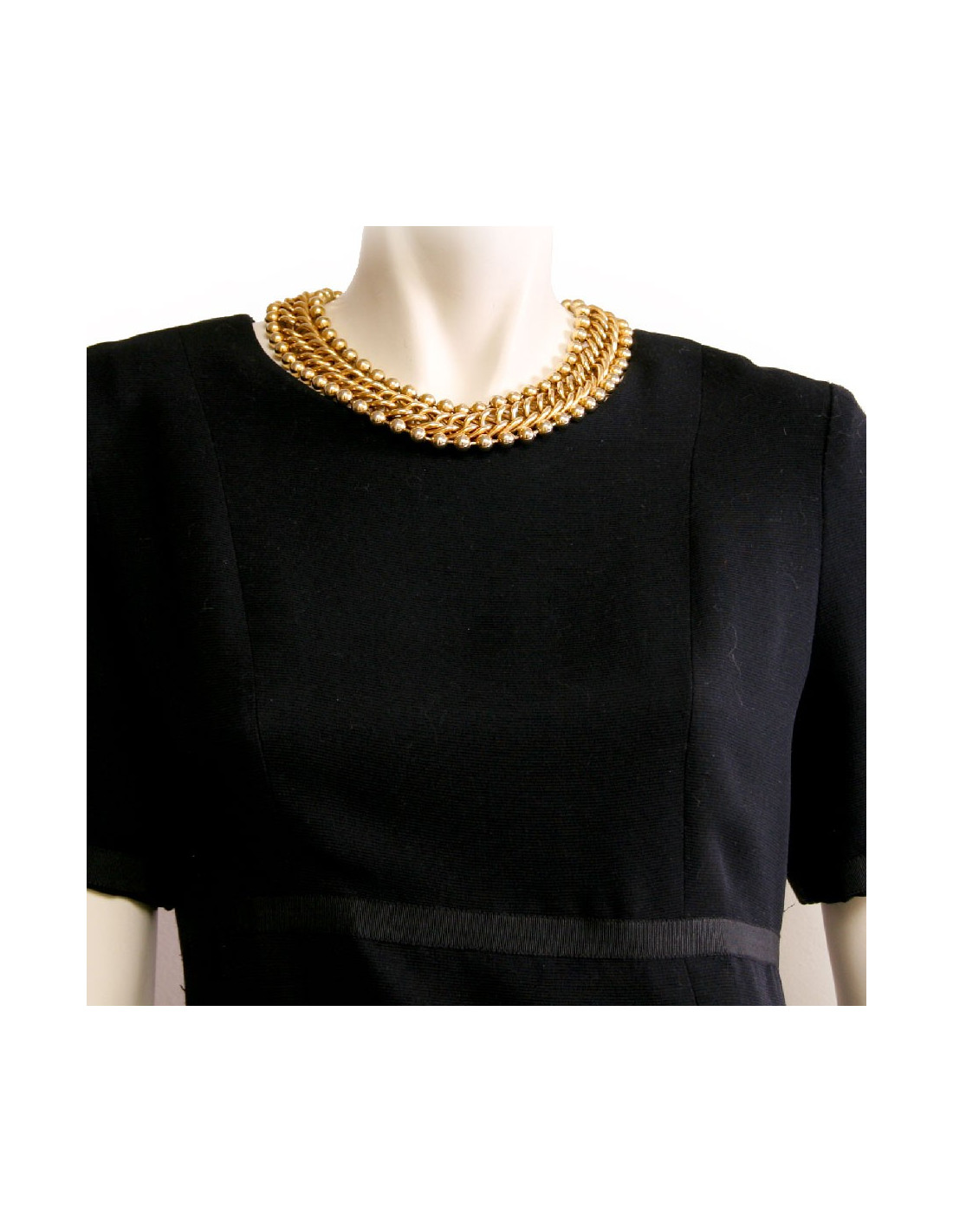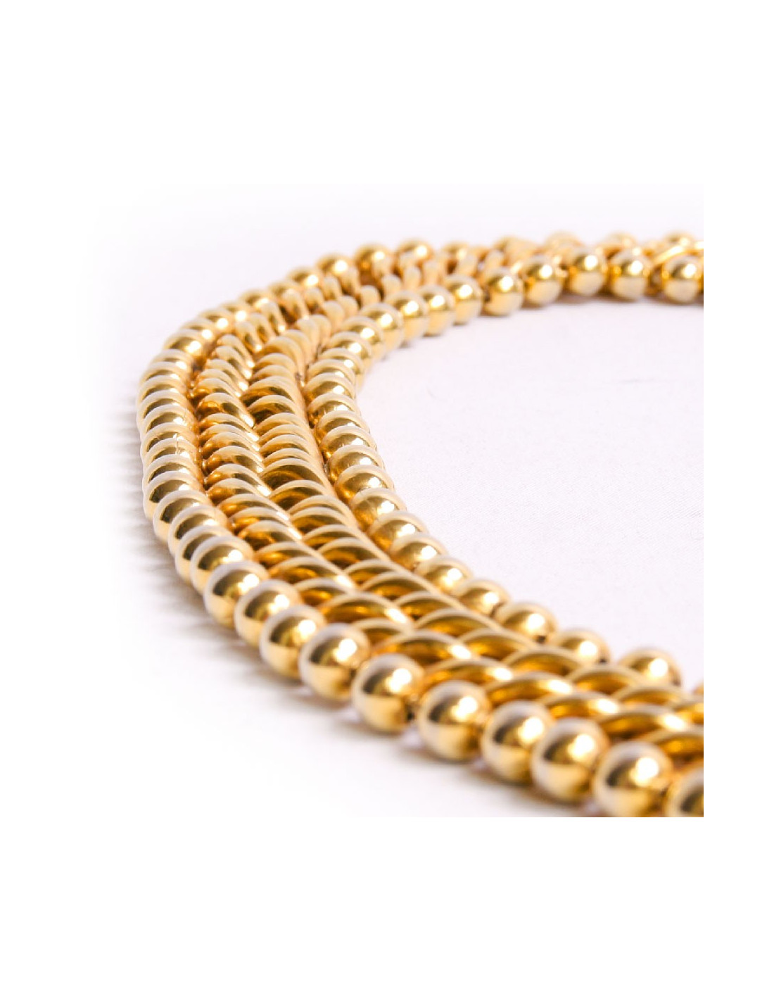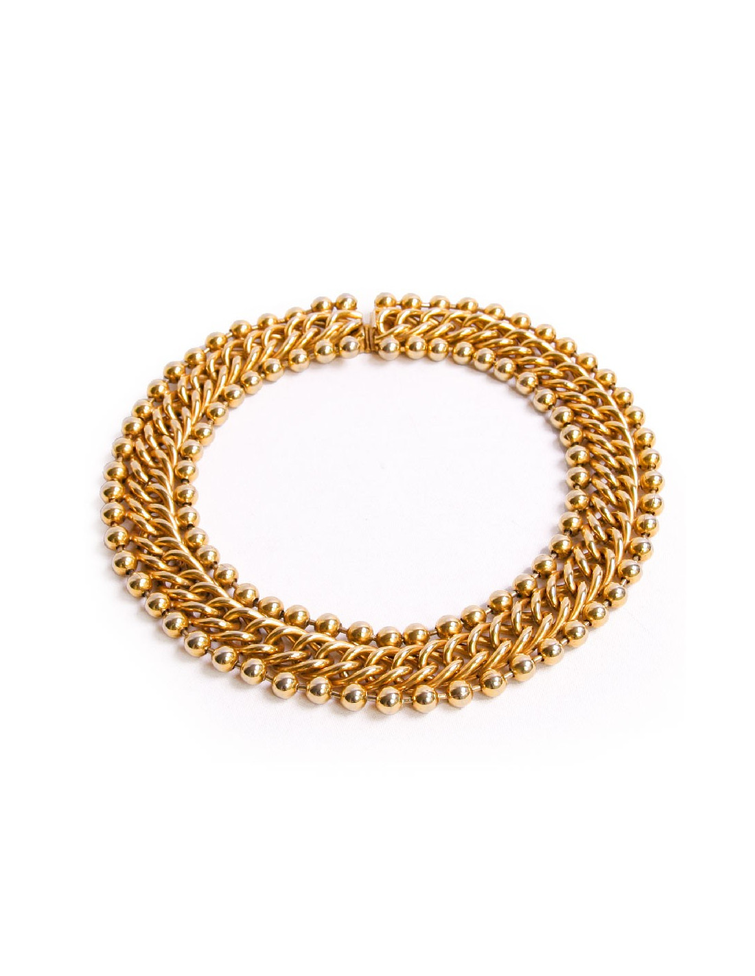 Imposant collier doré, chaîne et boules, qui agrémente aisément une jolie tenue. Il est en bon état (dorure légèrement passée).
