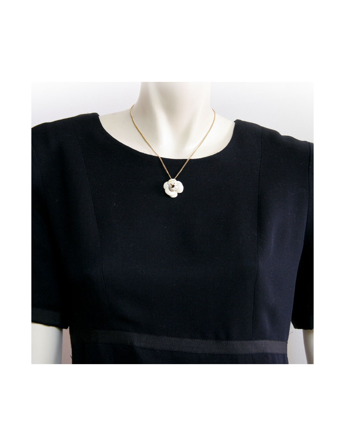 Collier camélia CHANEL émaillé ivoire