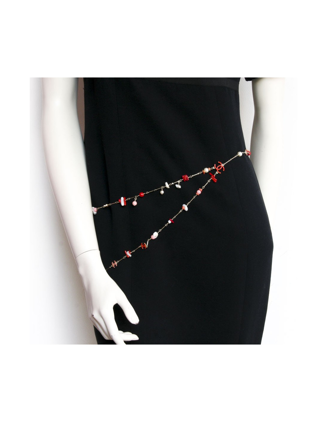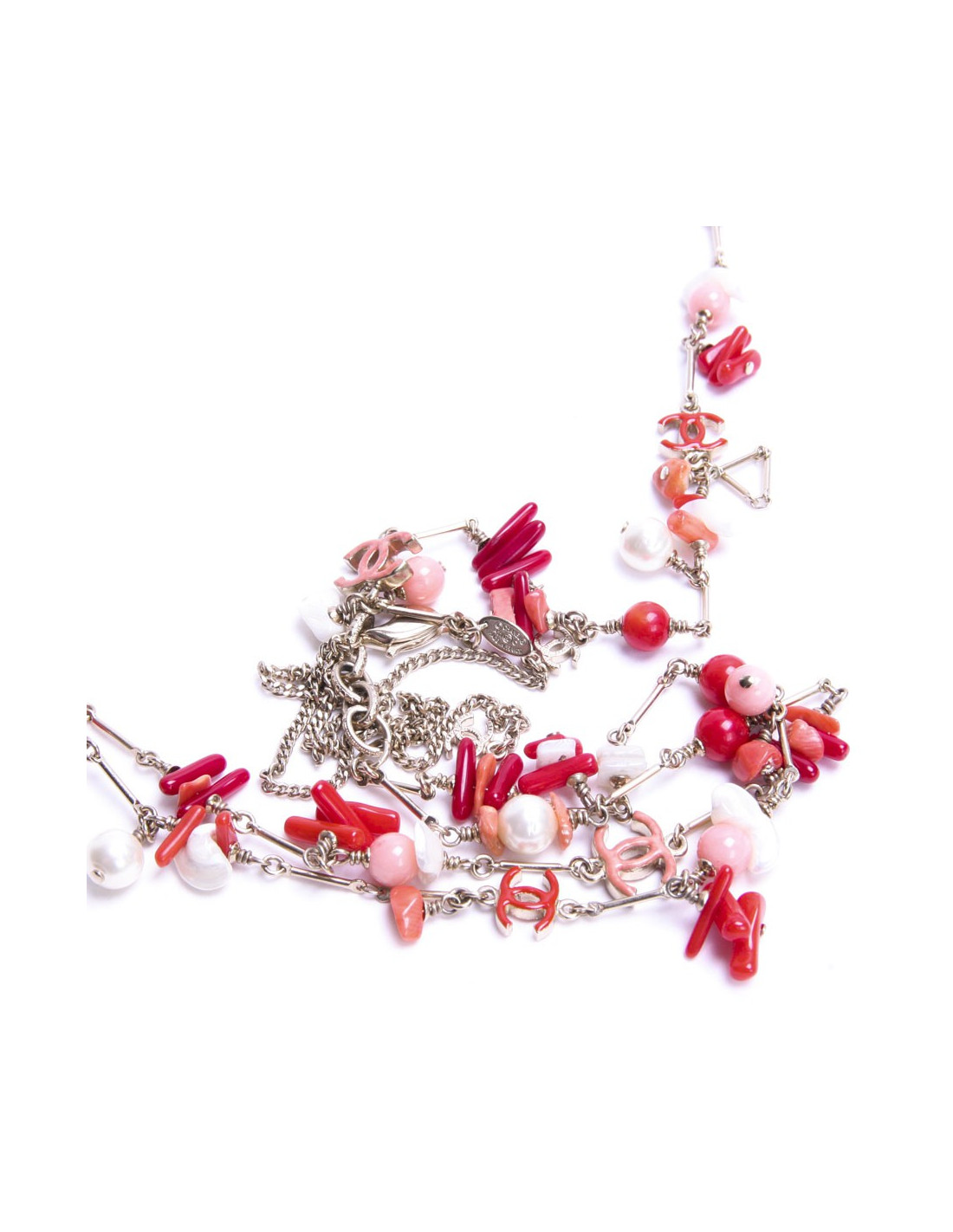 Ceinture sautoir CHANEL en corail et perles nacrées