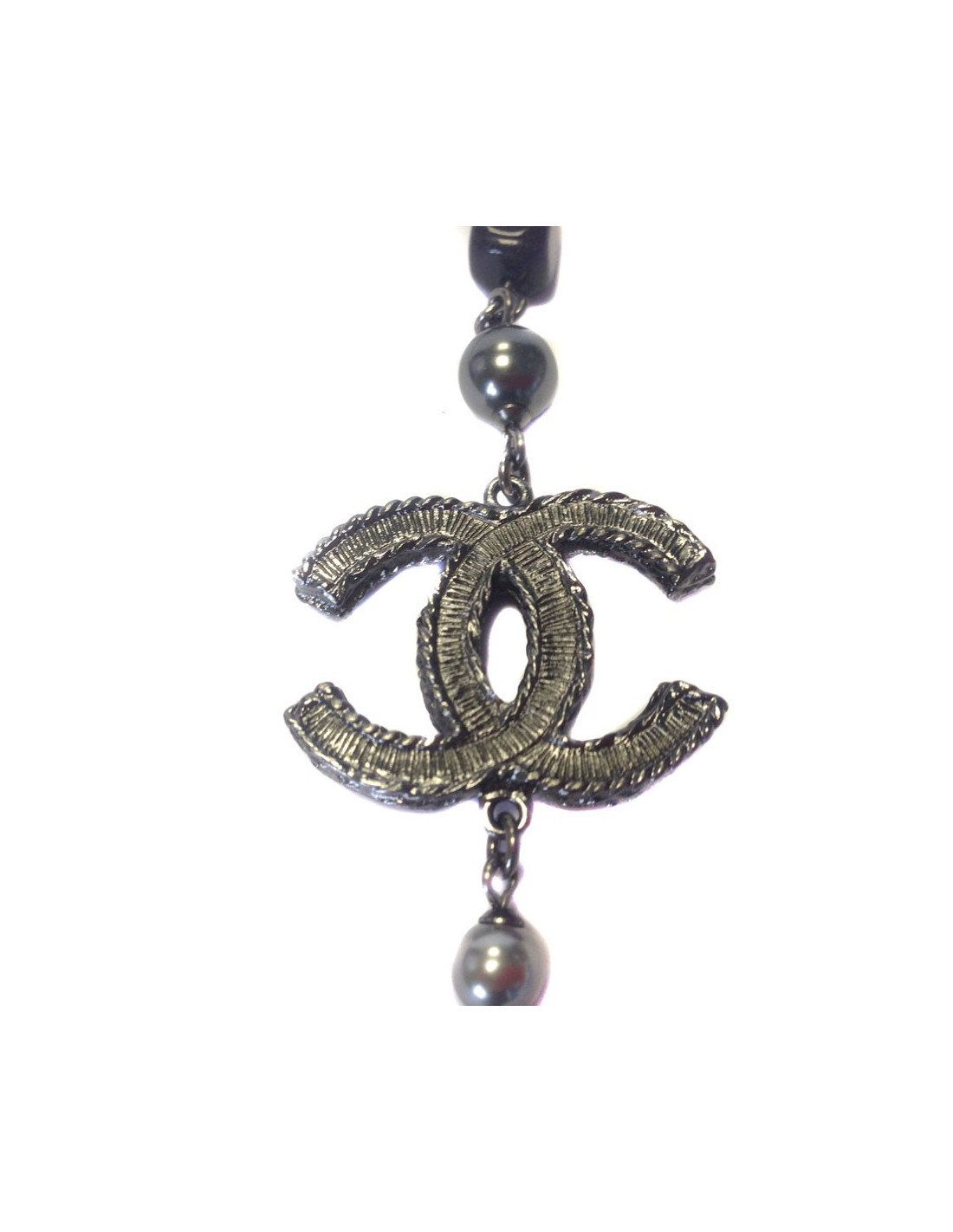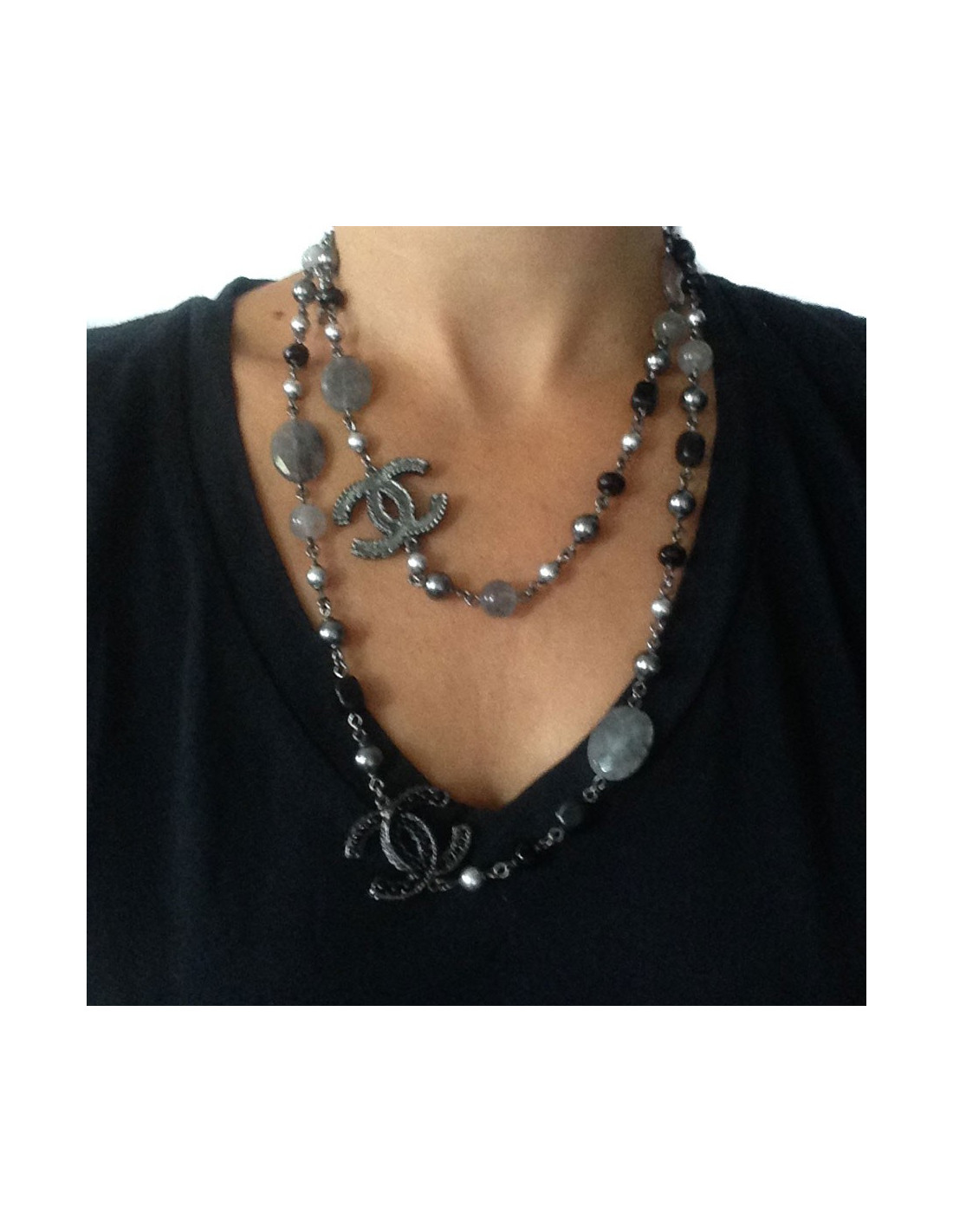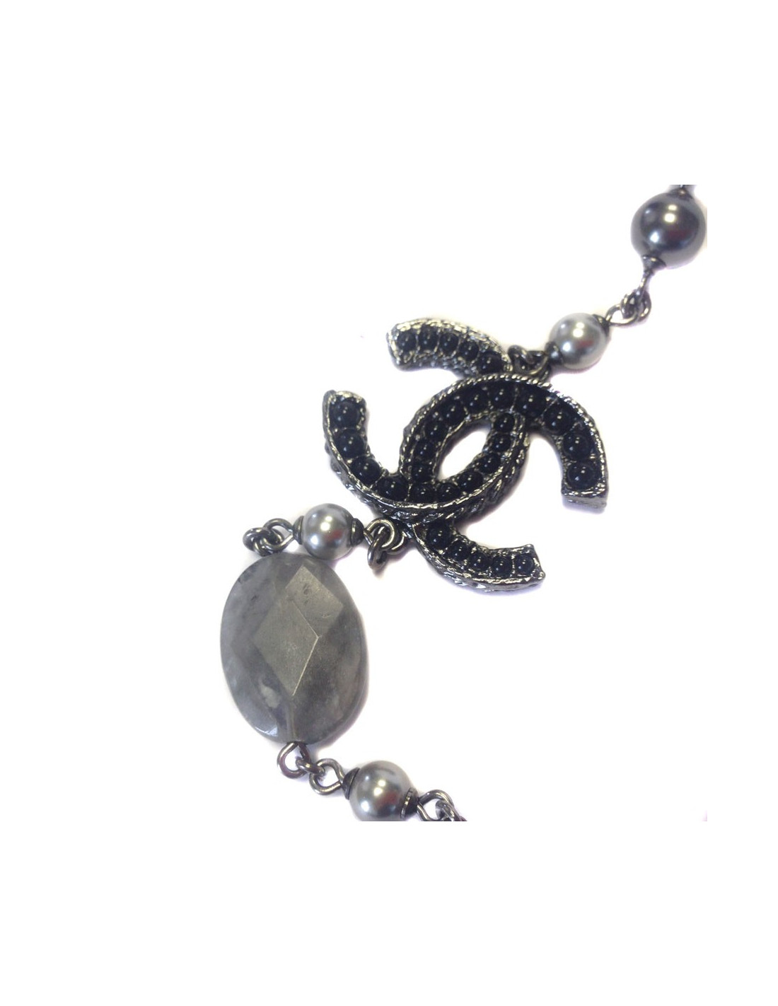 Sautoir CHANEL ruthénium, perles acier et fumées