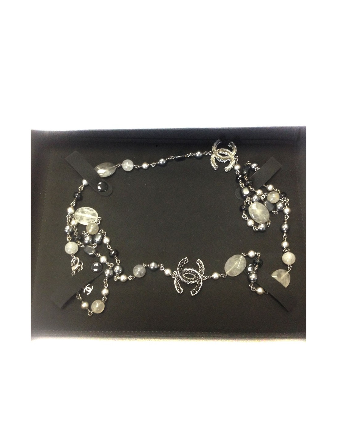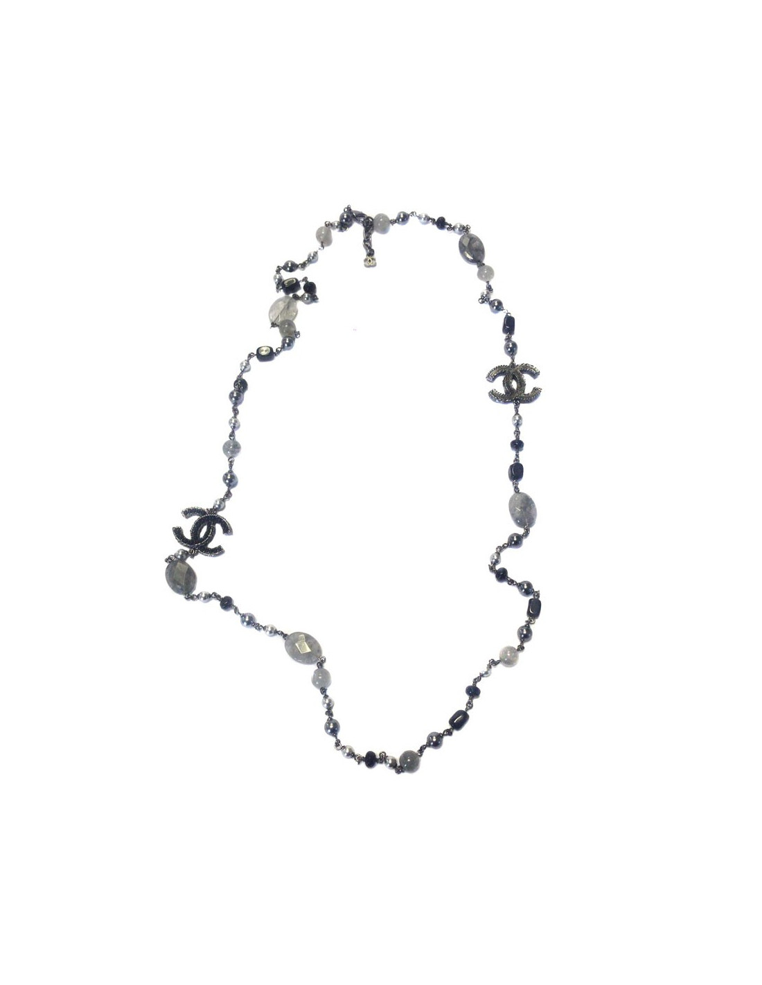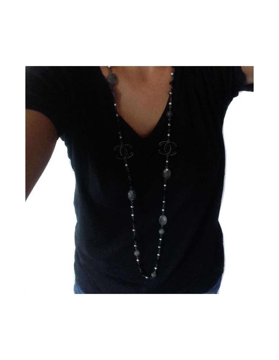 Sautoir CHANEL ruthénium, perles acier et fumées