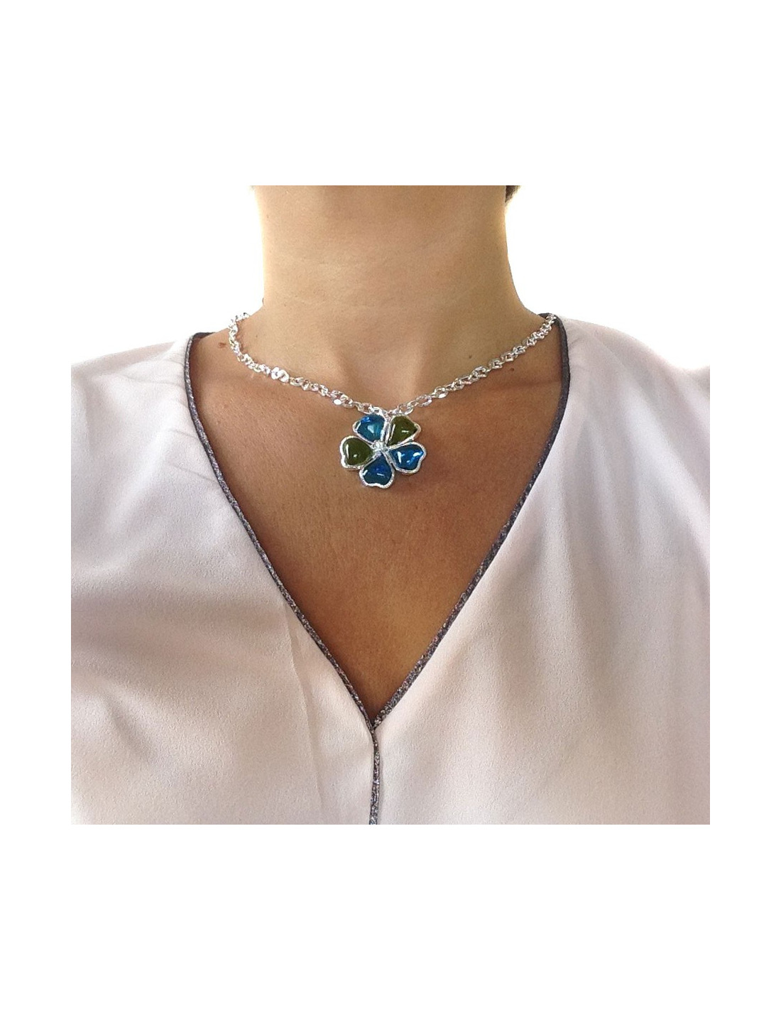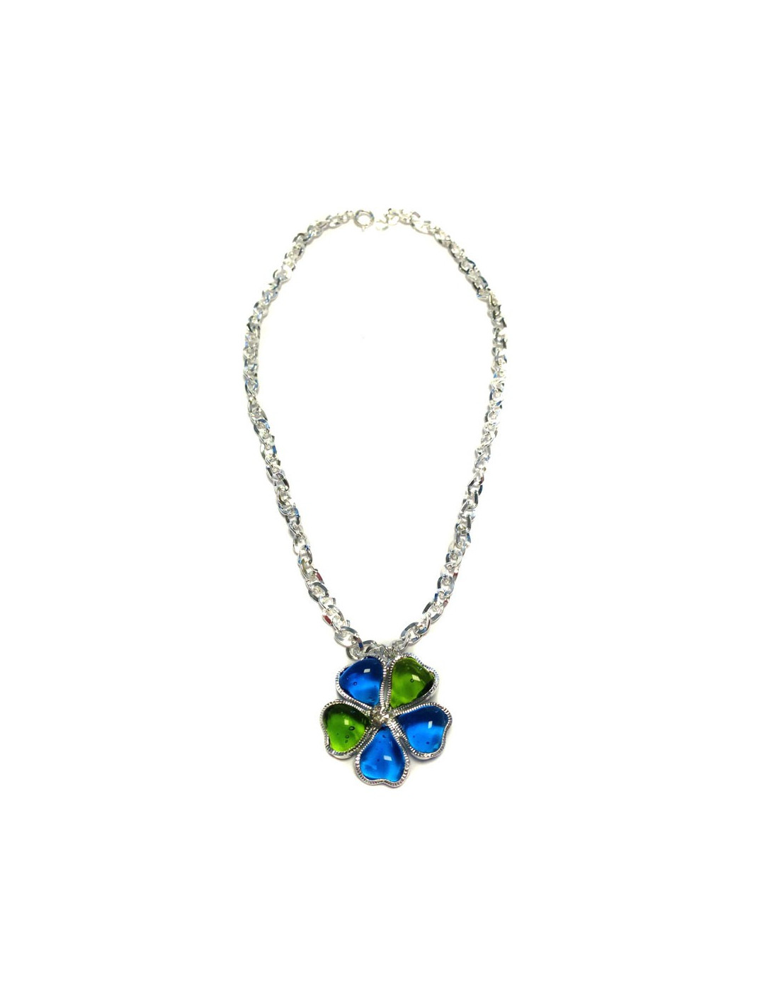 Collier fleurette MARGUERITE de VALOIS en pâte de verre vert et bleu