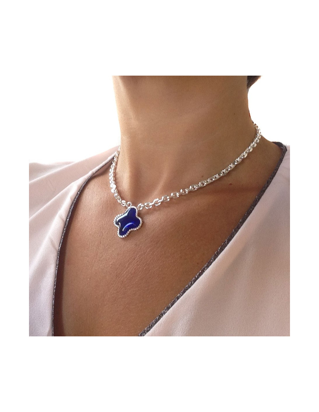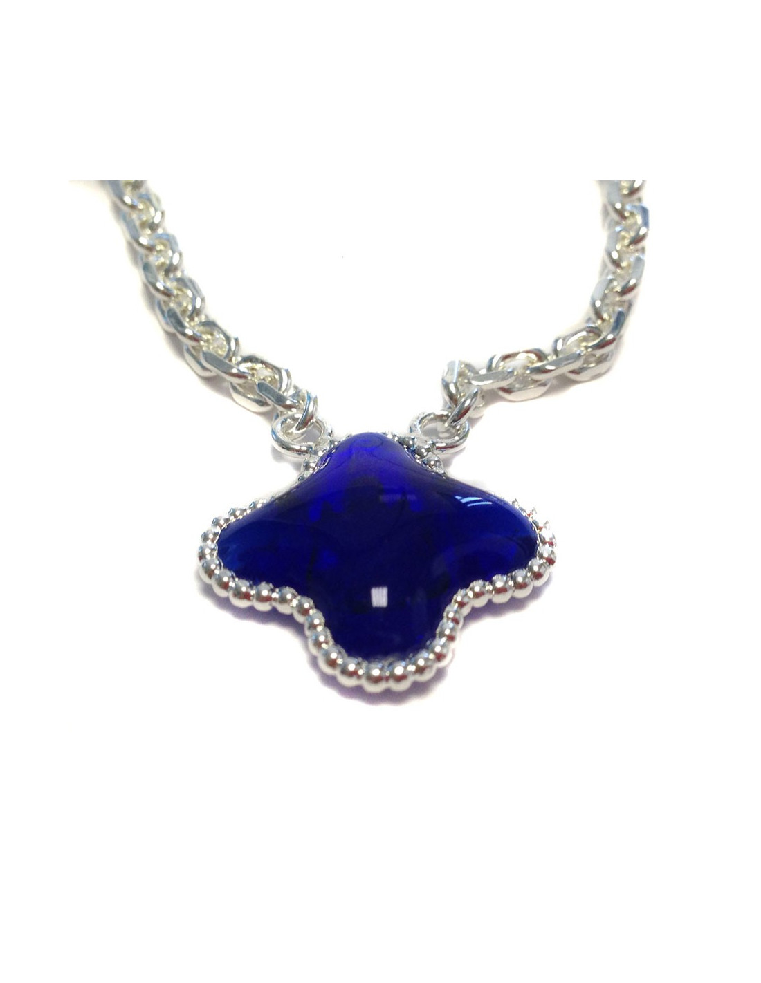 Collier trèfle MARGUERITE de VALOIS pâte de verre saphir