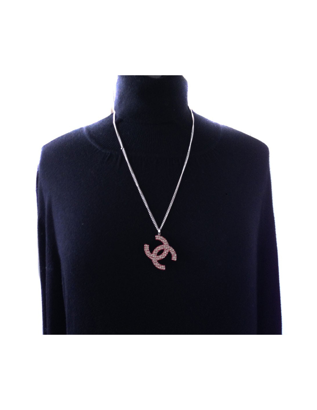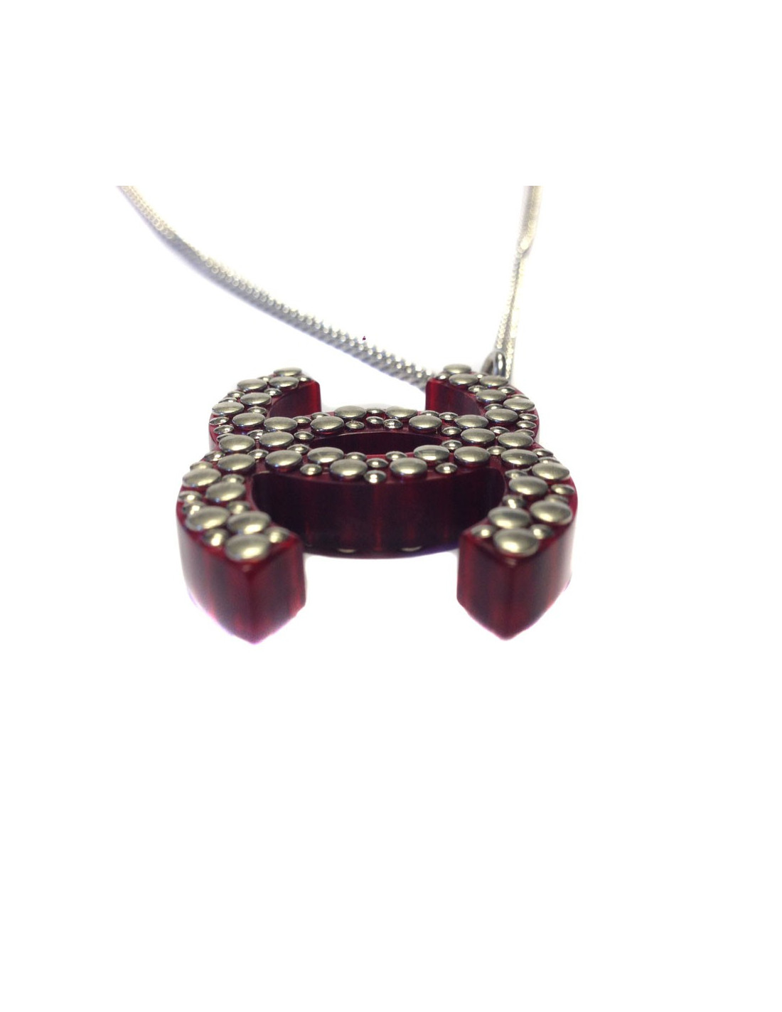 Collier CHANEL pendentif CC rouge en plexi clouté