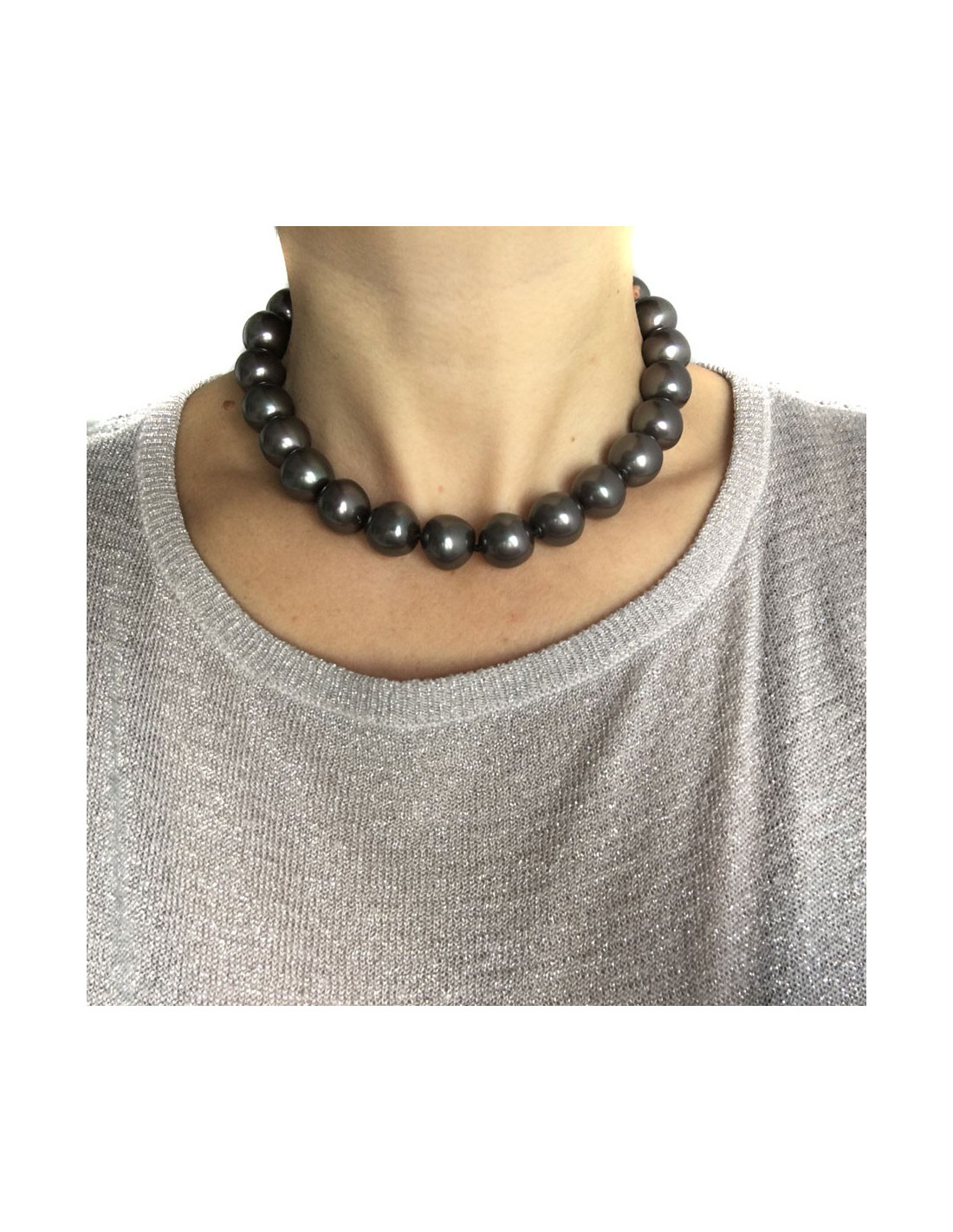 Collier CHRISTIAN DIOR en perles nacrées grises Vintage