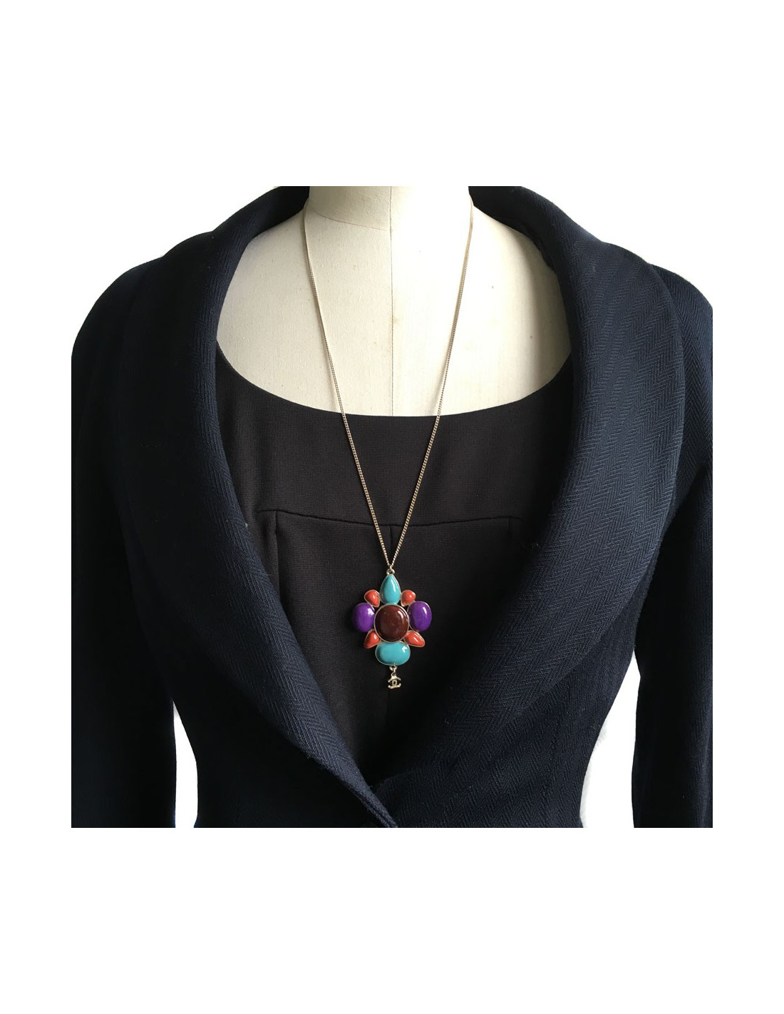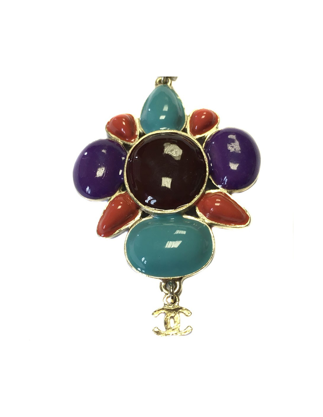Collier CHANEL multicolore, corail, marron, turquoise, violet
