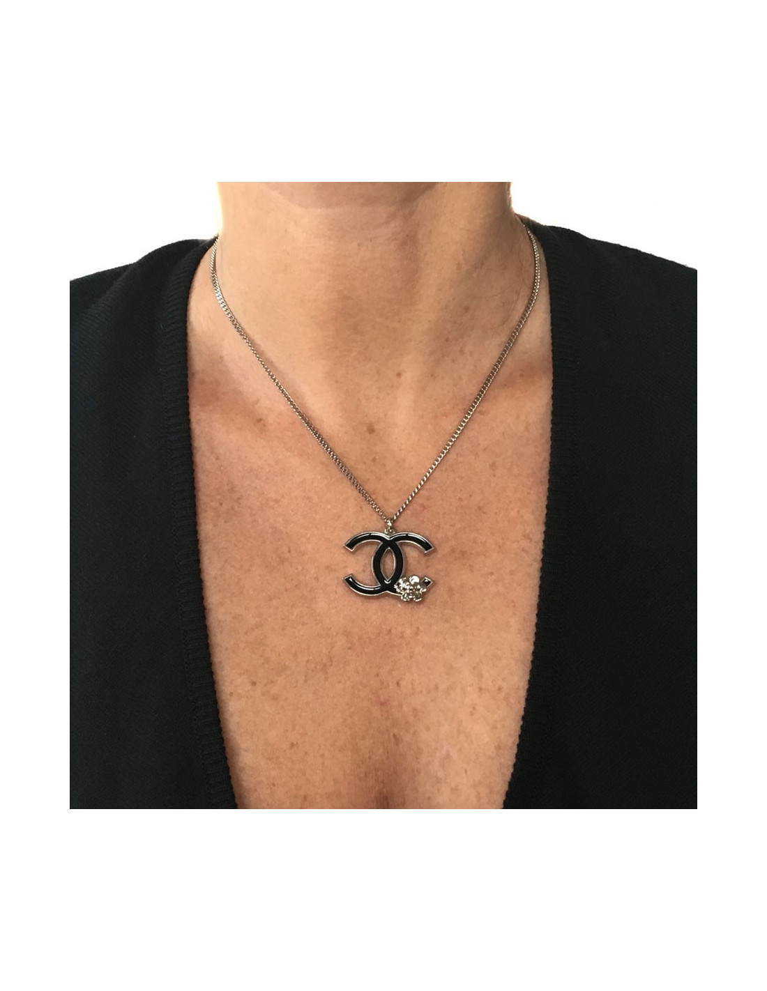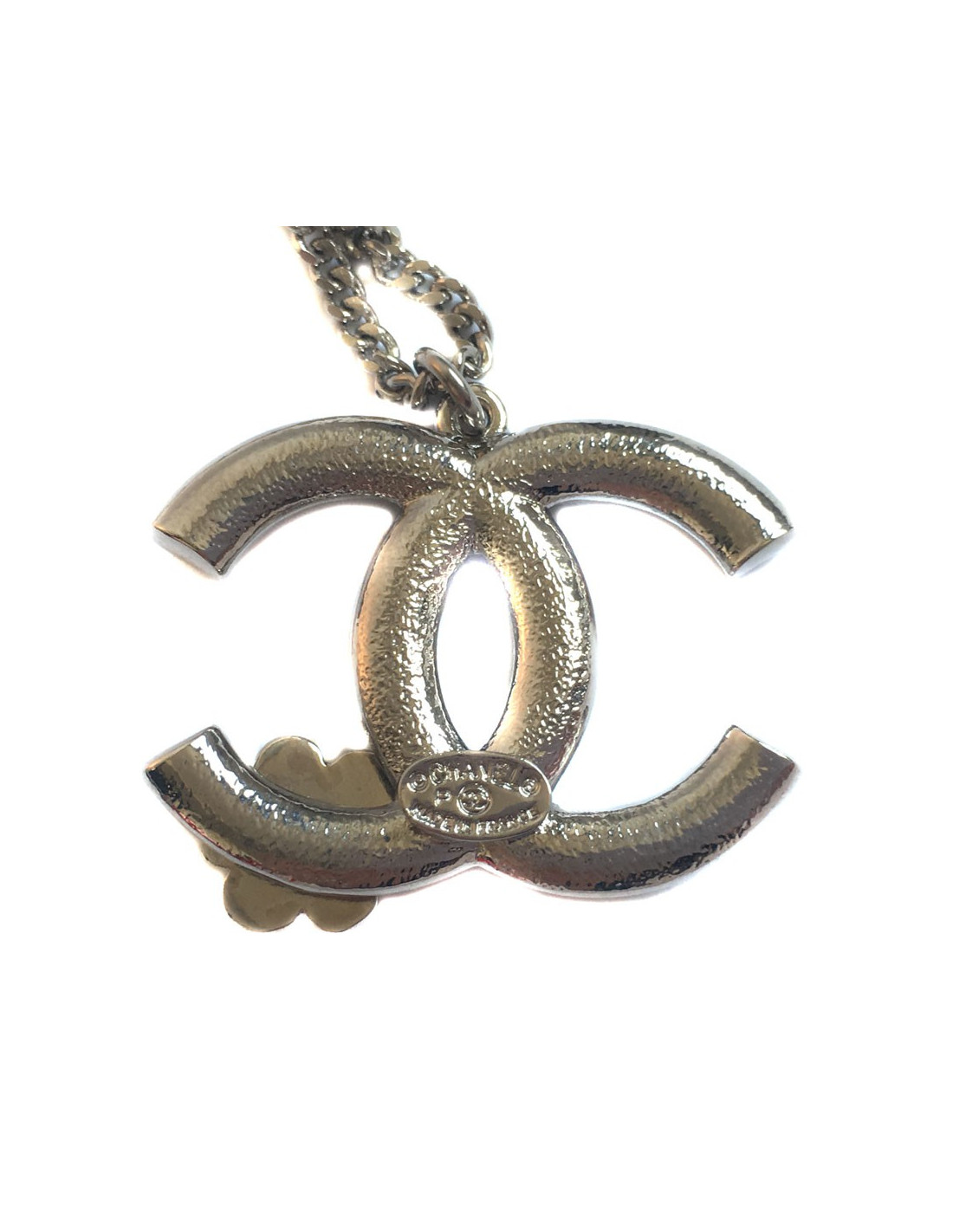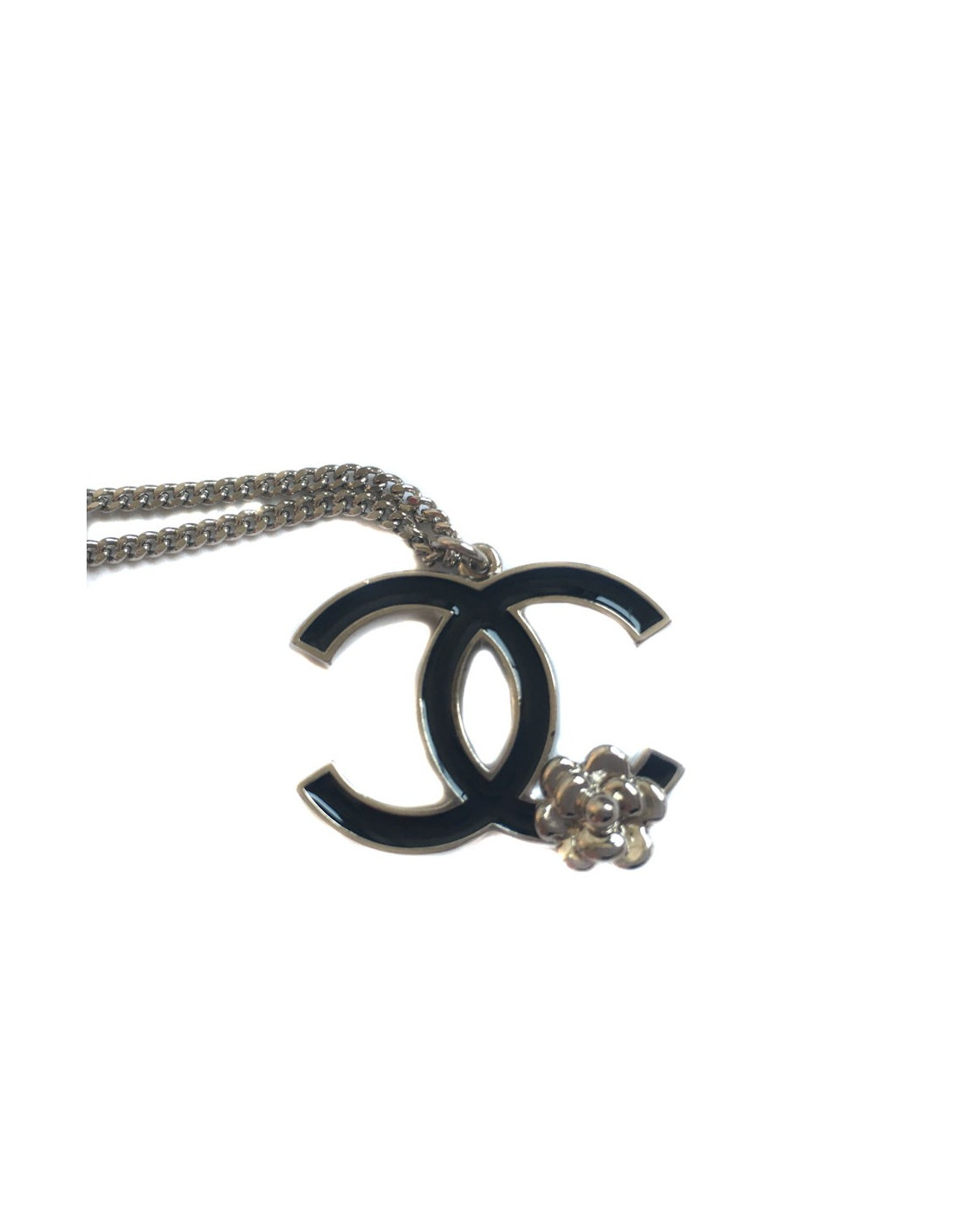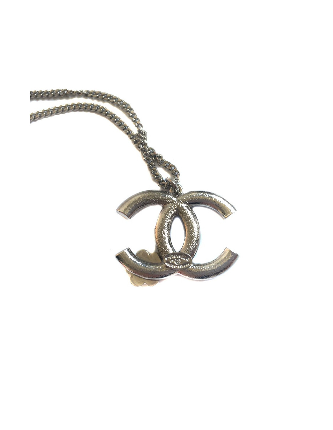 Collier CC CHANEL en métal argenté
