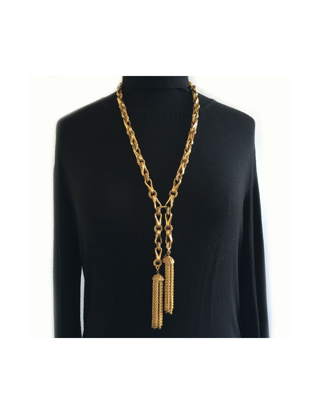 Original! Sautoir cravate CHRISTIAN DIOR. Pièce vintage. En chaîne façon passmenterie, 2 pompons en