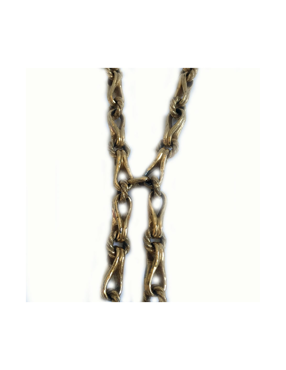 chaînes fines au milieu du sautoir. Pastille de la marque présente. En très bon état.