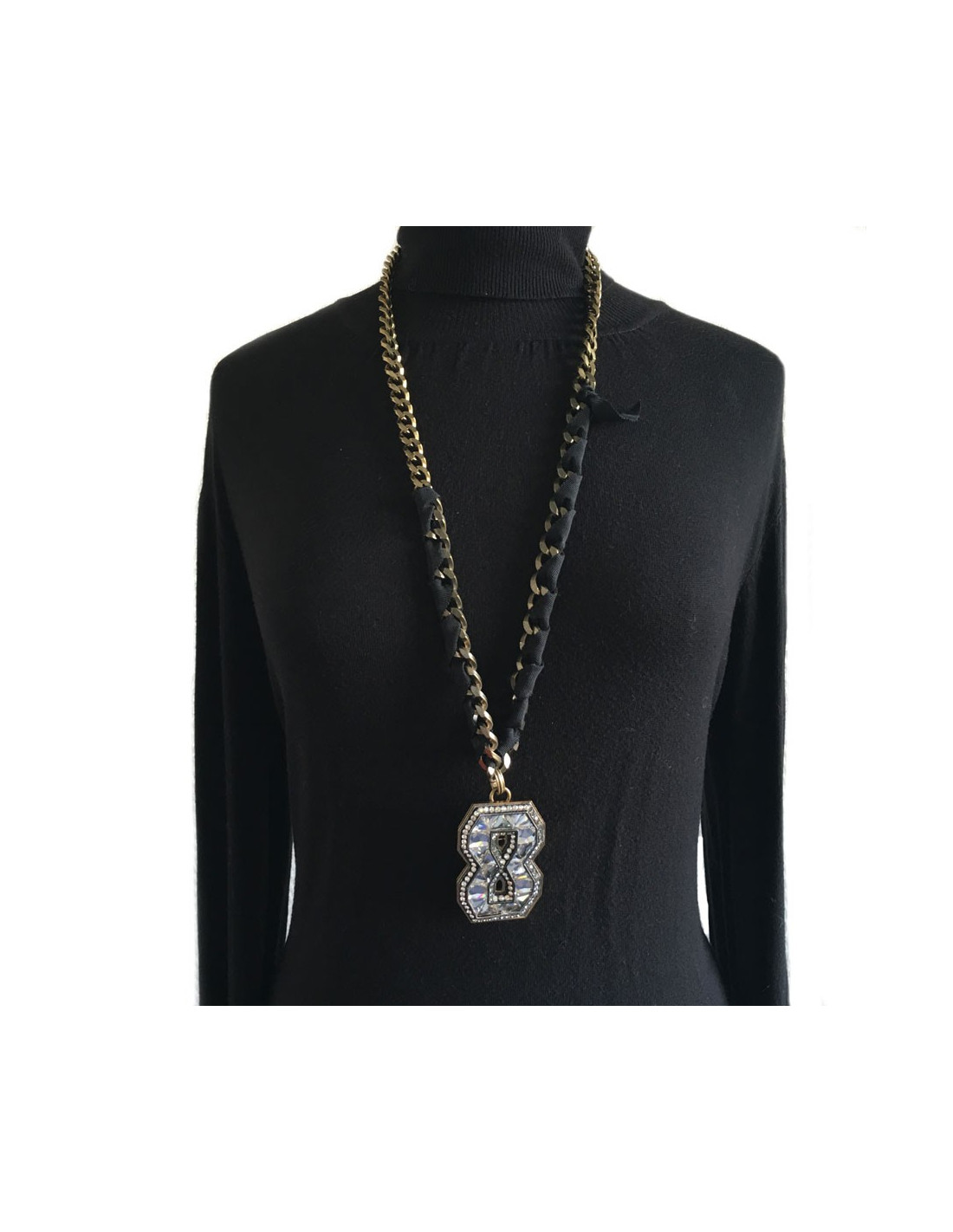 Sautoir LANVIN pendentif broche 8 en strass