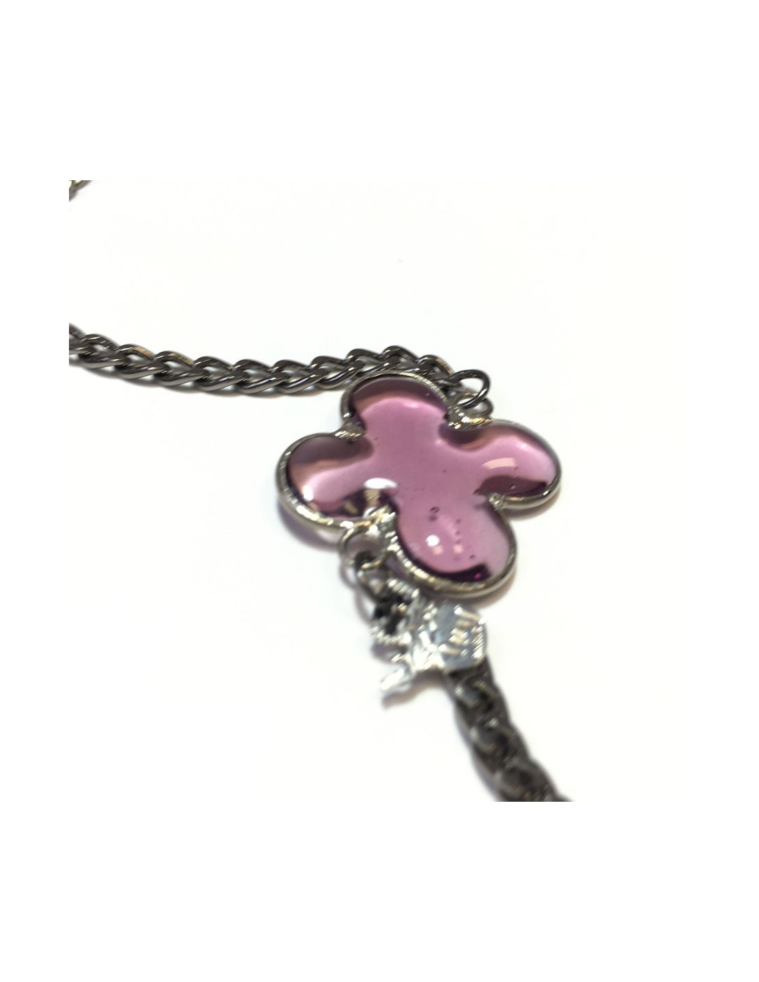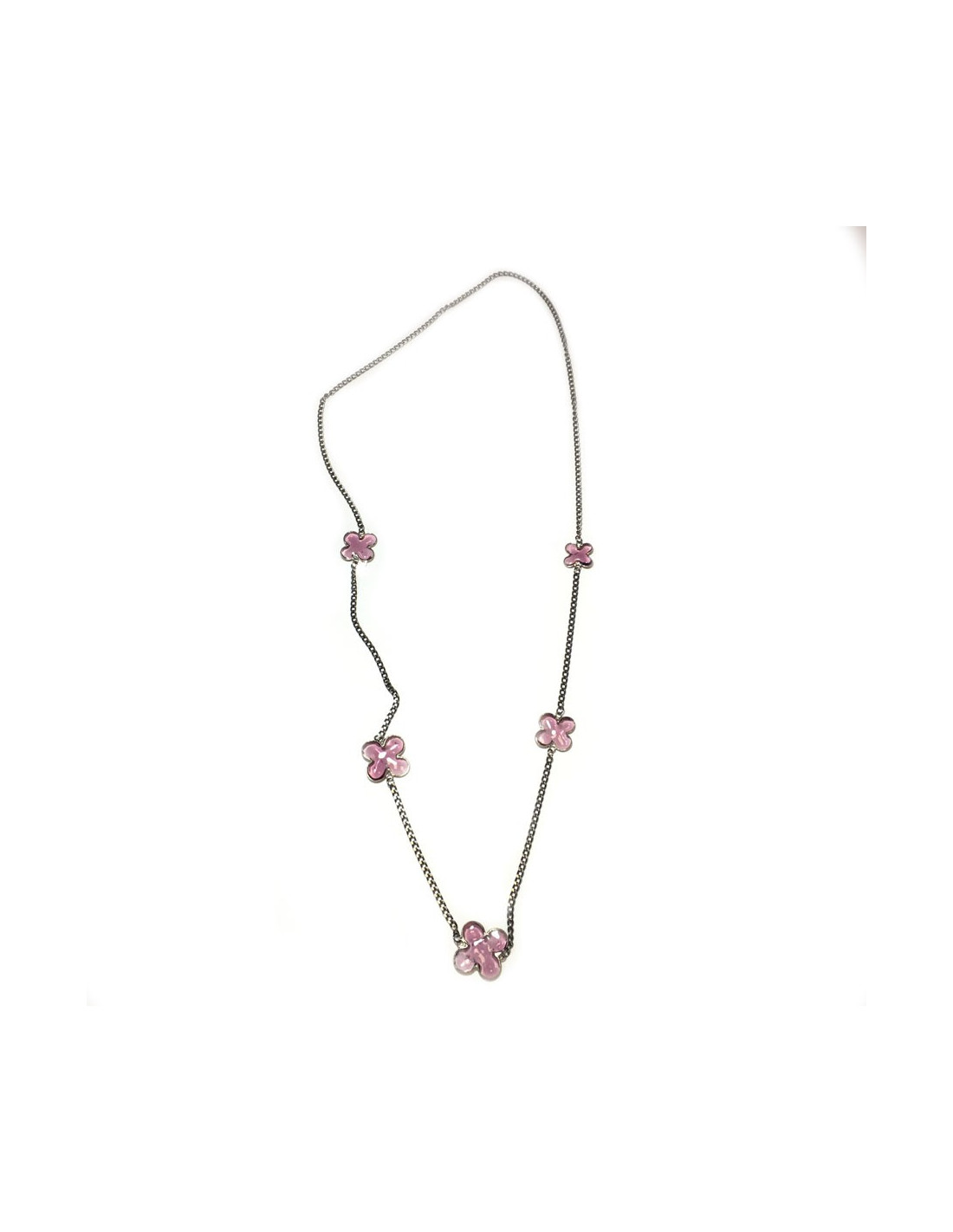 Sautoir Trèfle Marguerite de Valois pâte de verre amethyste