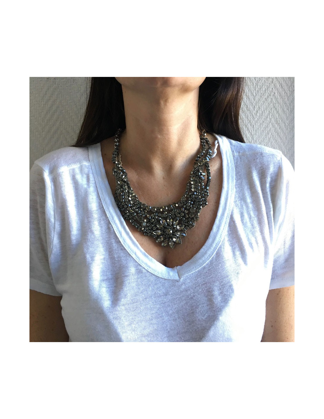 Vendu COLLIERS - SAUTOIRS Collier houblons MARGUERITE DE VALOIS pâte de verre MARGUERITE DE VALOIS 32593 4 900,00 € Collier houblons MARGUERITE DE VALOIS Modèle : collier Couture Matière : perles en pâte de verreCouleur : transparent noirMatière : métal , pâte de verreBijouterie : argentFermoir crochet.Jamais porté. .Dimensions: Au plus court: 42 cm. Voir