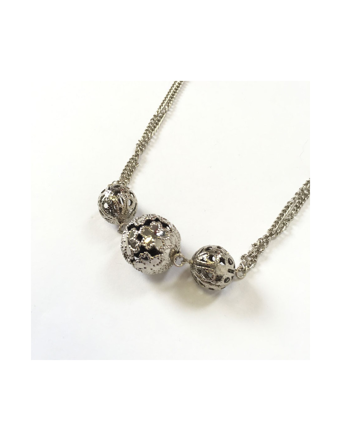 Sautoir MARGUERITE DE VALOIS « Sphère » en métal argenté