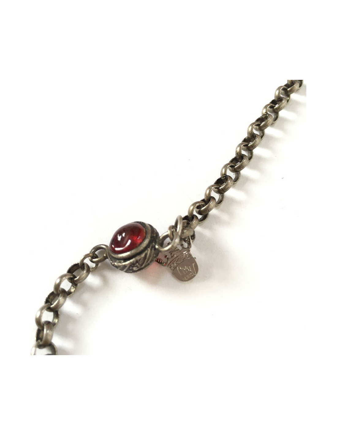 Sautoir MARGUERITE DE VALOIS chaîne argentée vieillie et pâte de verre mauve et bordeaux