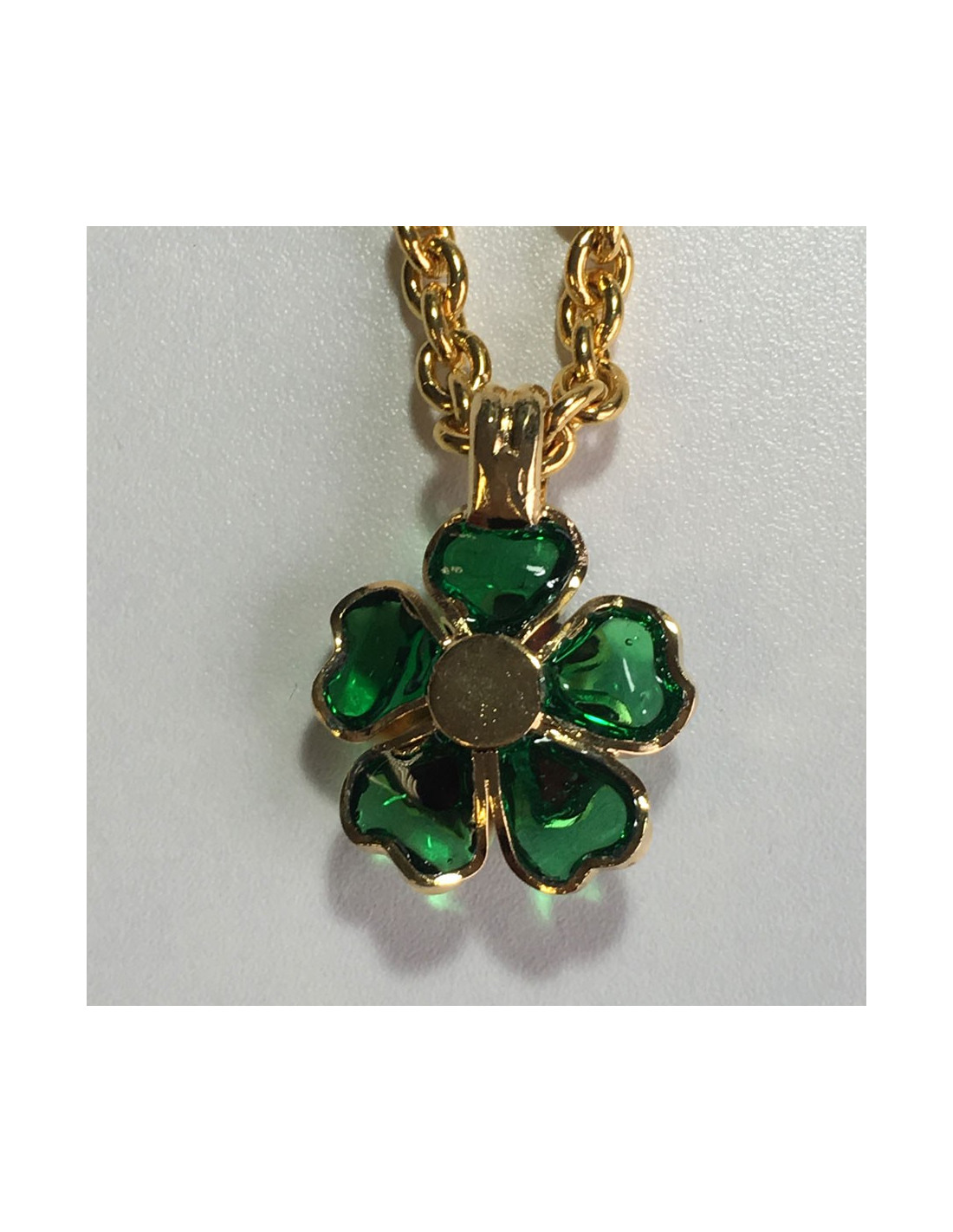 Collier MARGUERITE DE VALOIS fleurette en pâte de verre émeraude et ambre