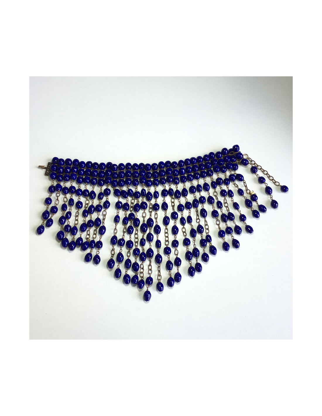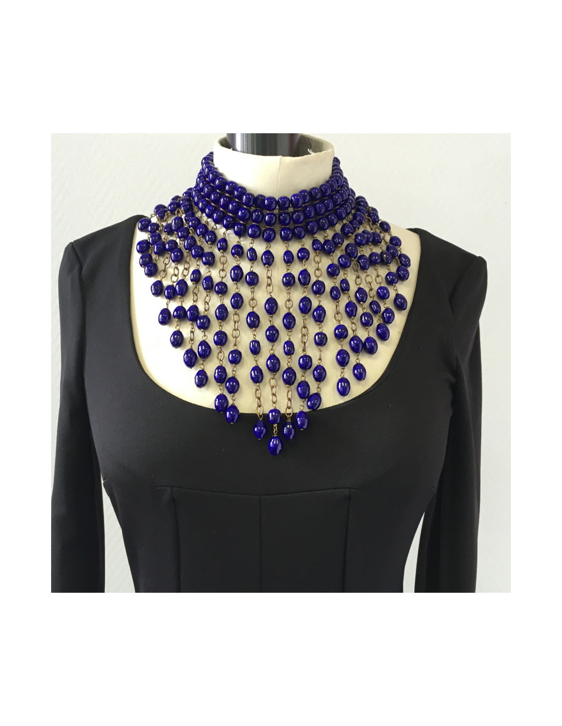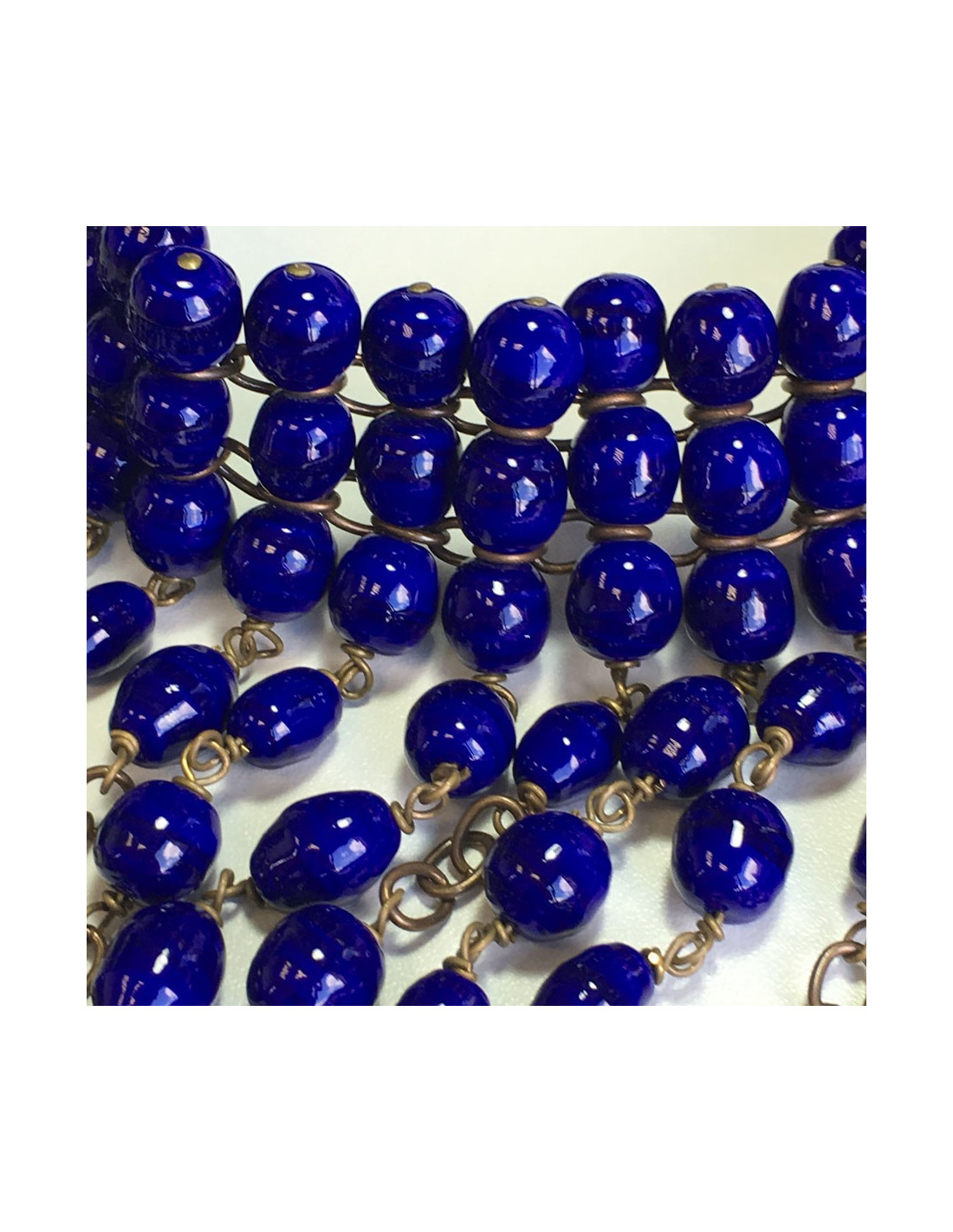 Collier MARGUERITE de VALOIS couture en perles de pâte de verre saphir