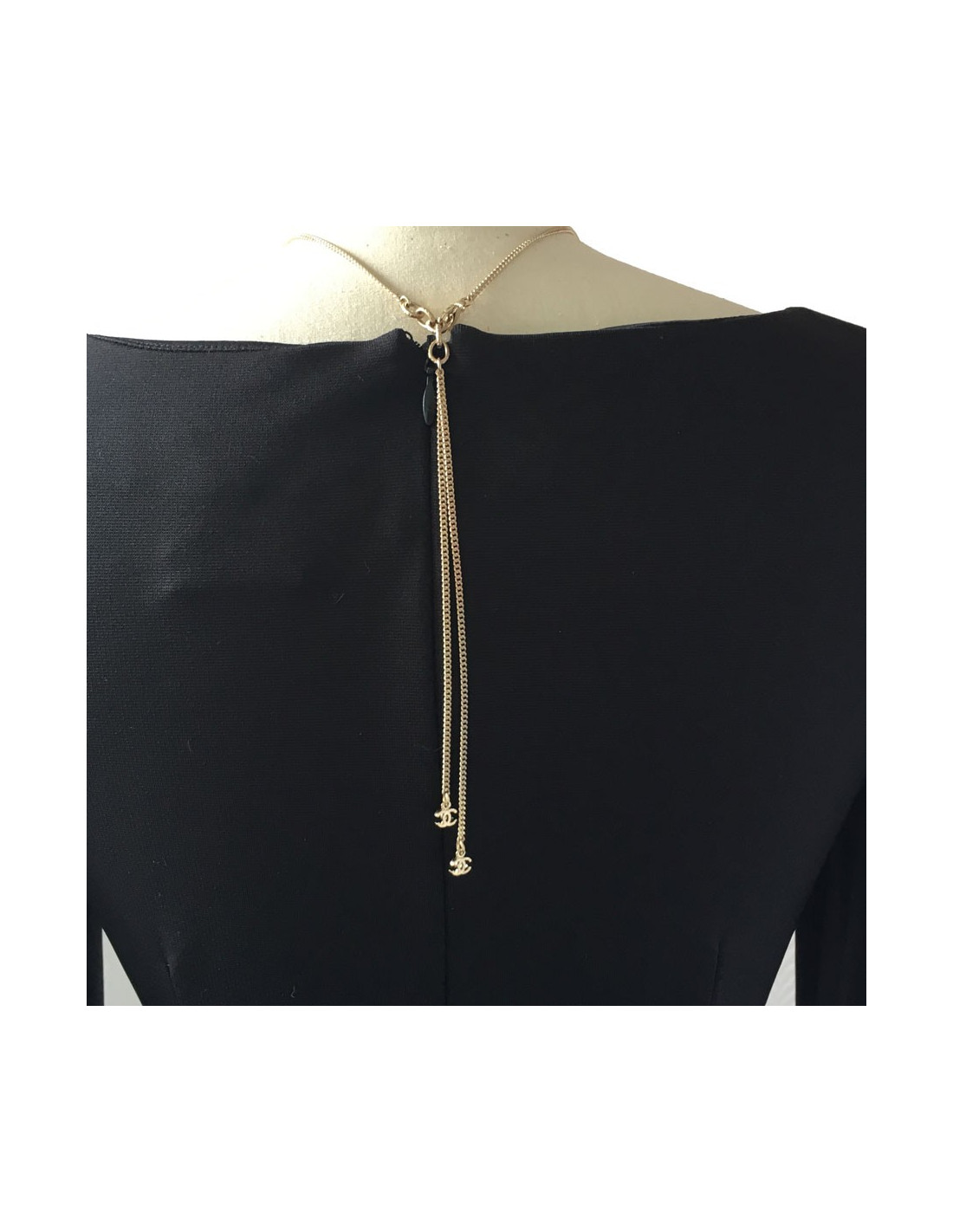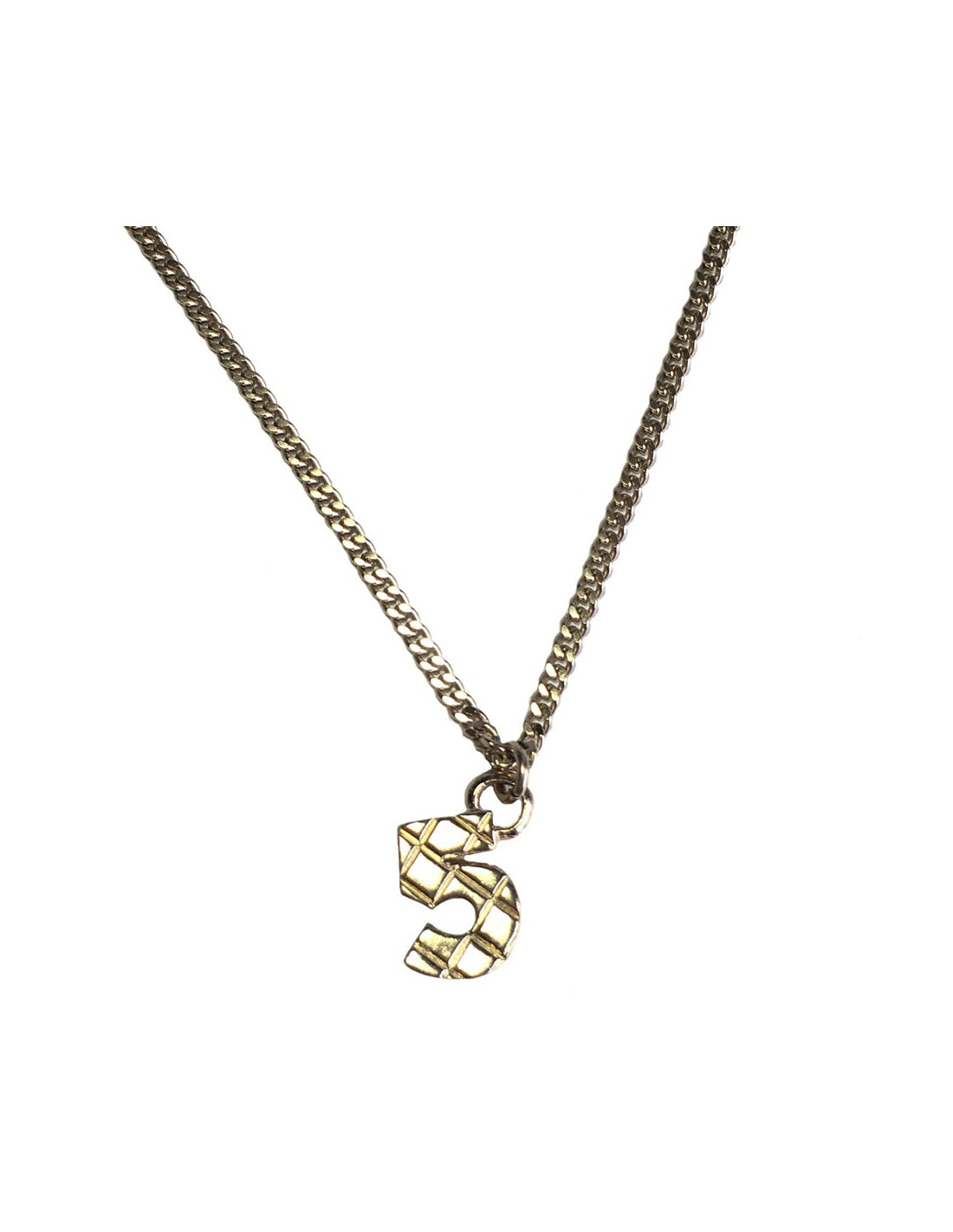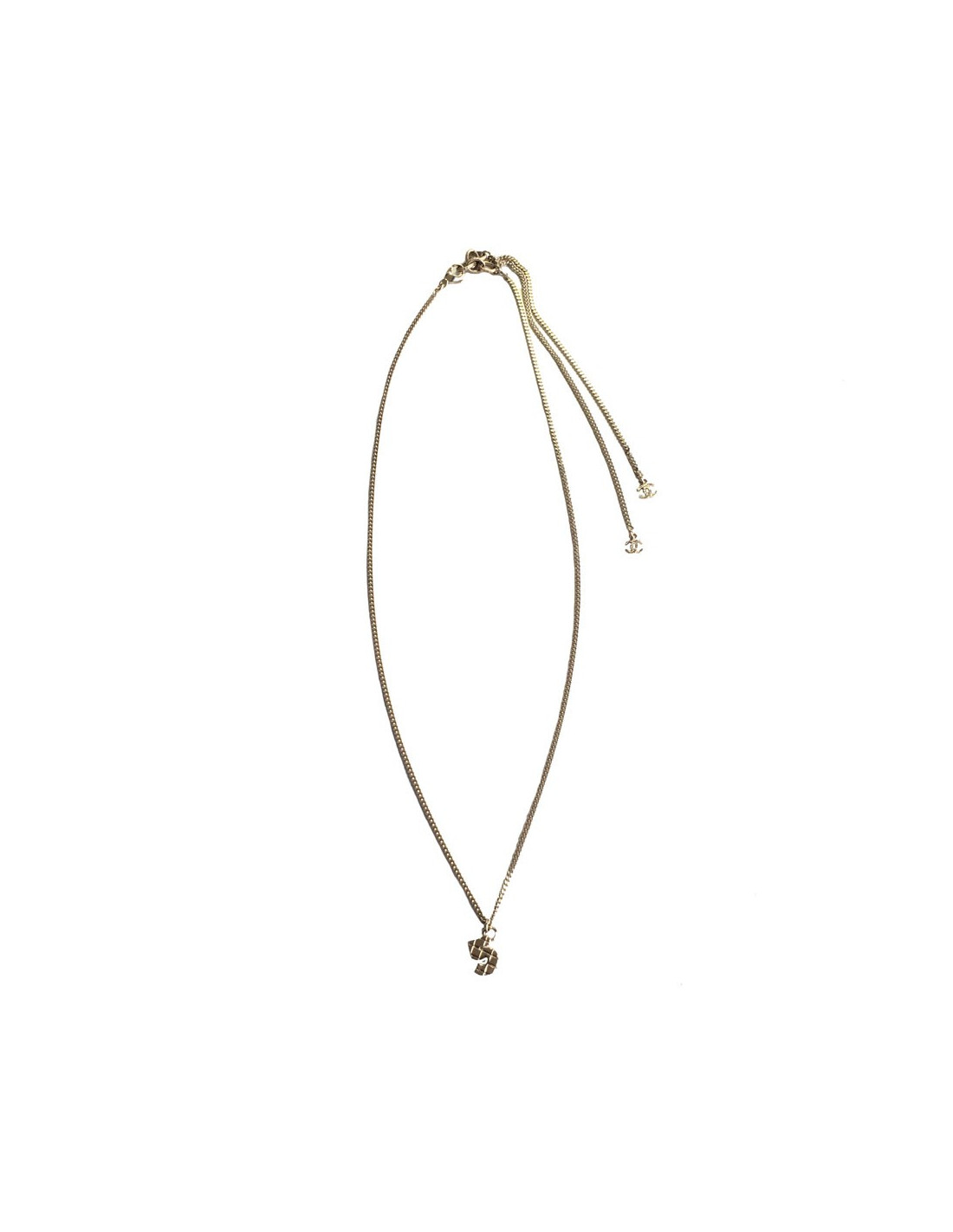 Collier CHANEL "5" en métal doré. Le chiffre 5 a un effet matelassé. 2 petits CC terminent le fermoir. En parfait état.